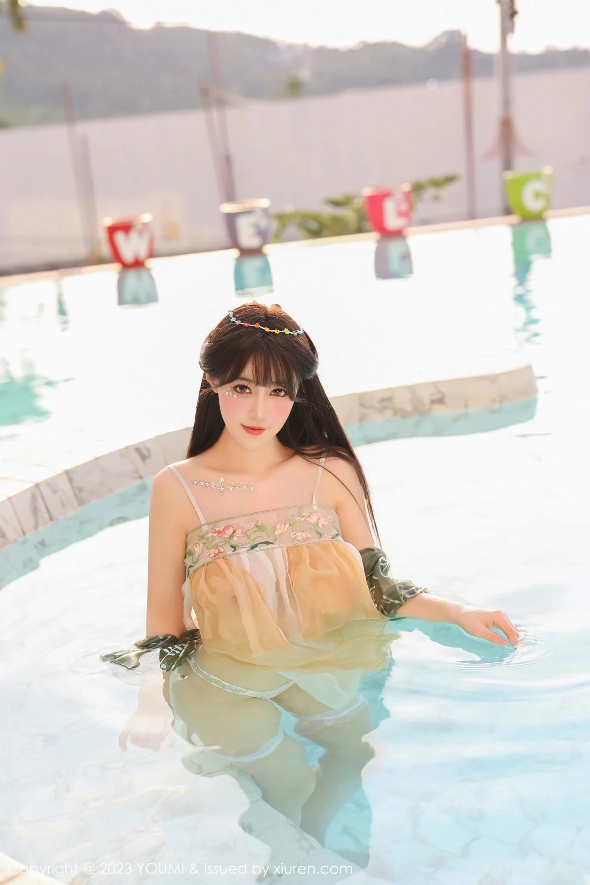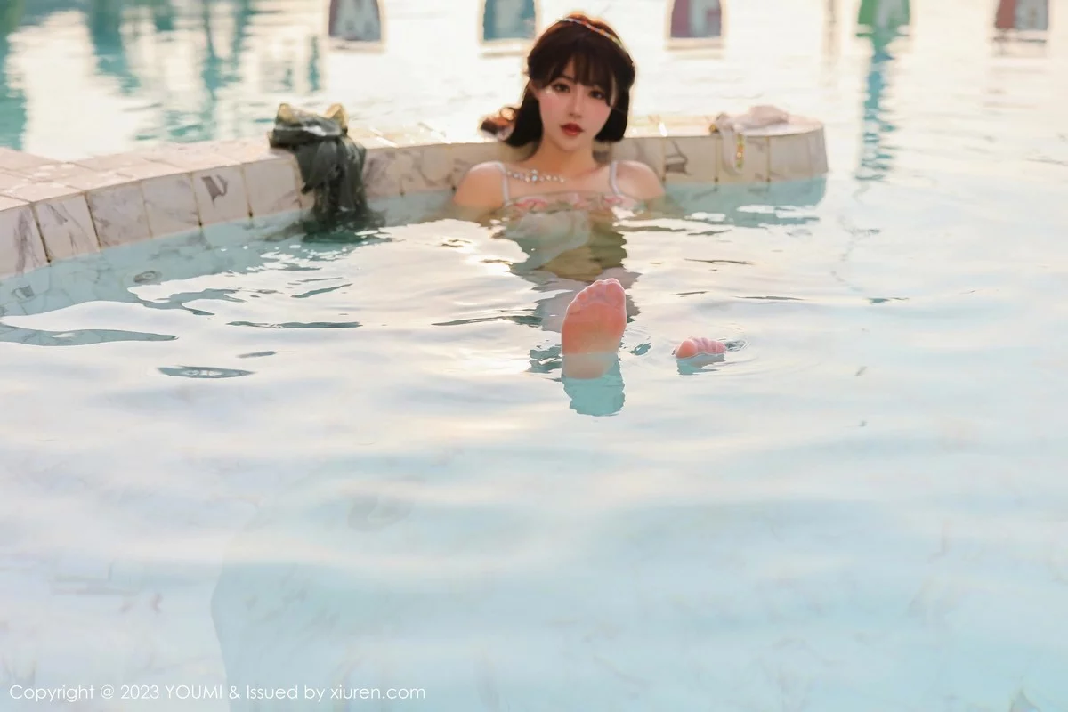 [YouMi尤蜜荟]Vol.936 女神朱可儿Flora泳池边淡黄色轻透薄纱秀雪峰美臀极致诱惑写真84P