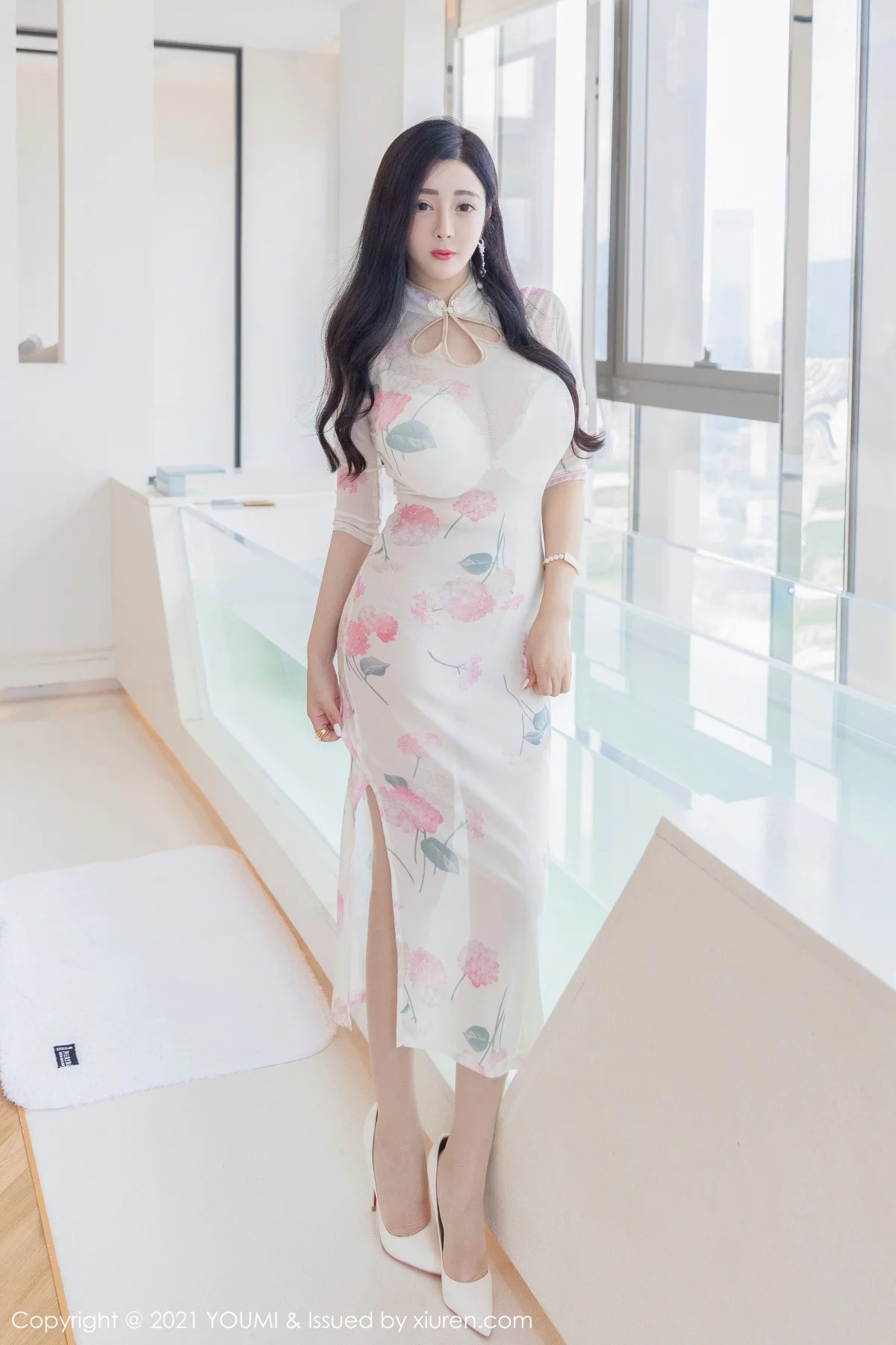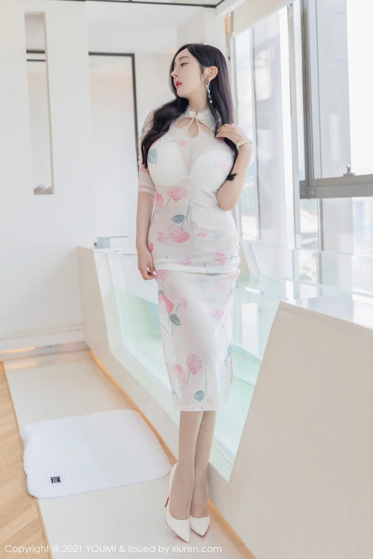 [YouMi尤蜜荟]Vol.706 模特允爾私房洁雅古韵旗袍配超薄肉丝裤袜秀豪乳翘臀诱惑写真58P