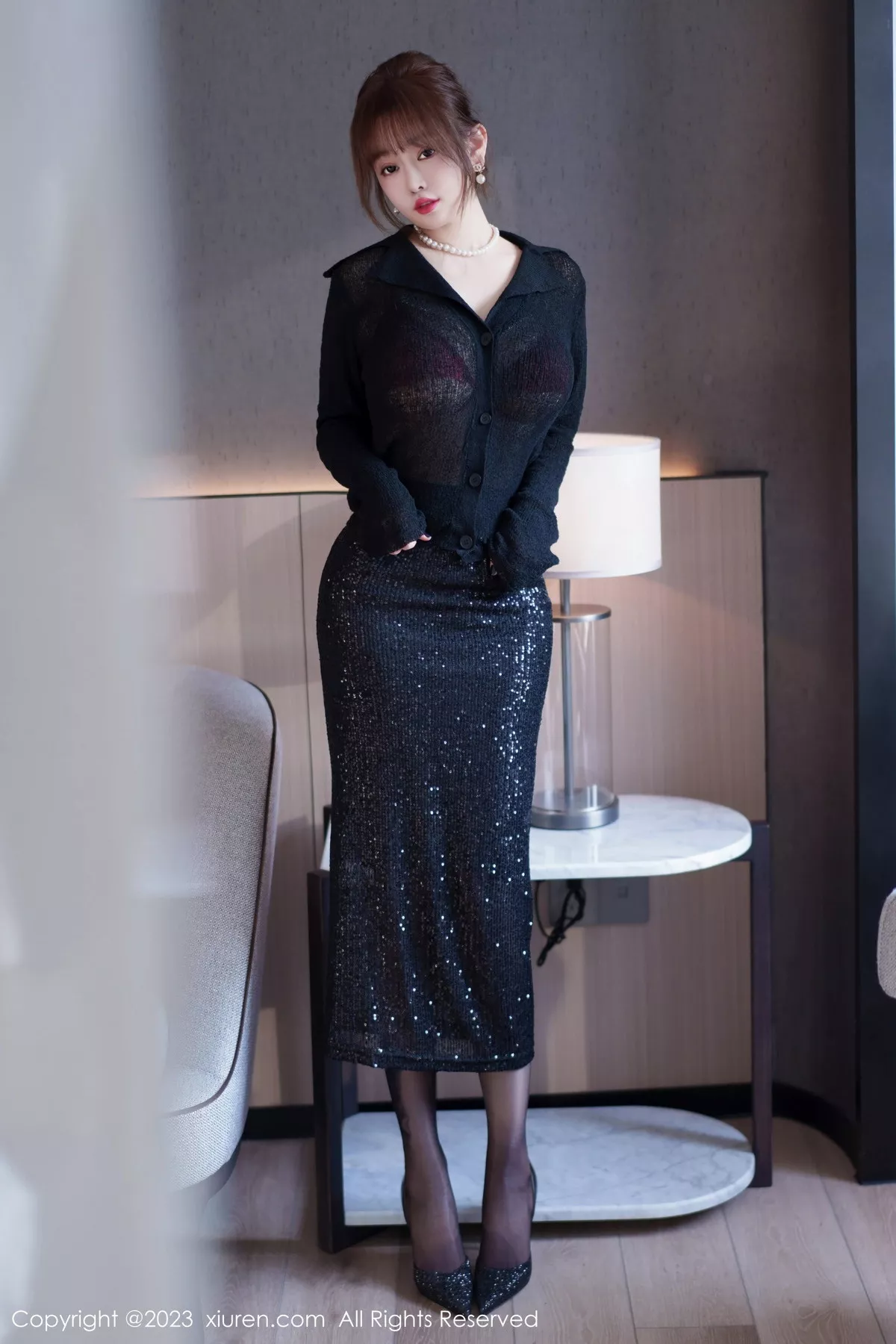 [XiuRen秀人网]No.7156 女神王雨纯性感黑色衣露红色蕾丝情趣内衣配超薄黑丝诱惑写真75P