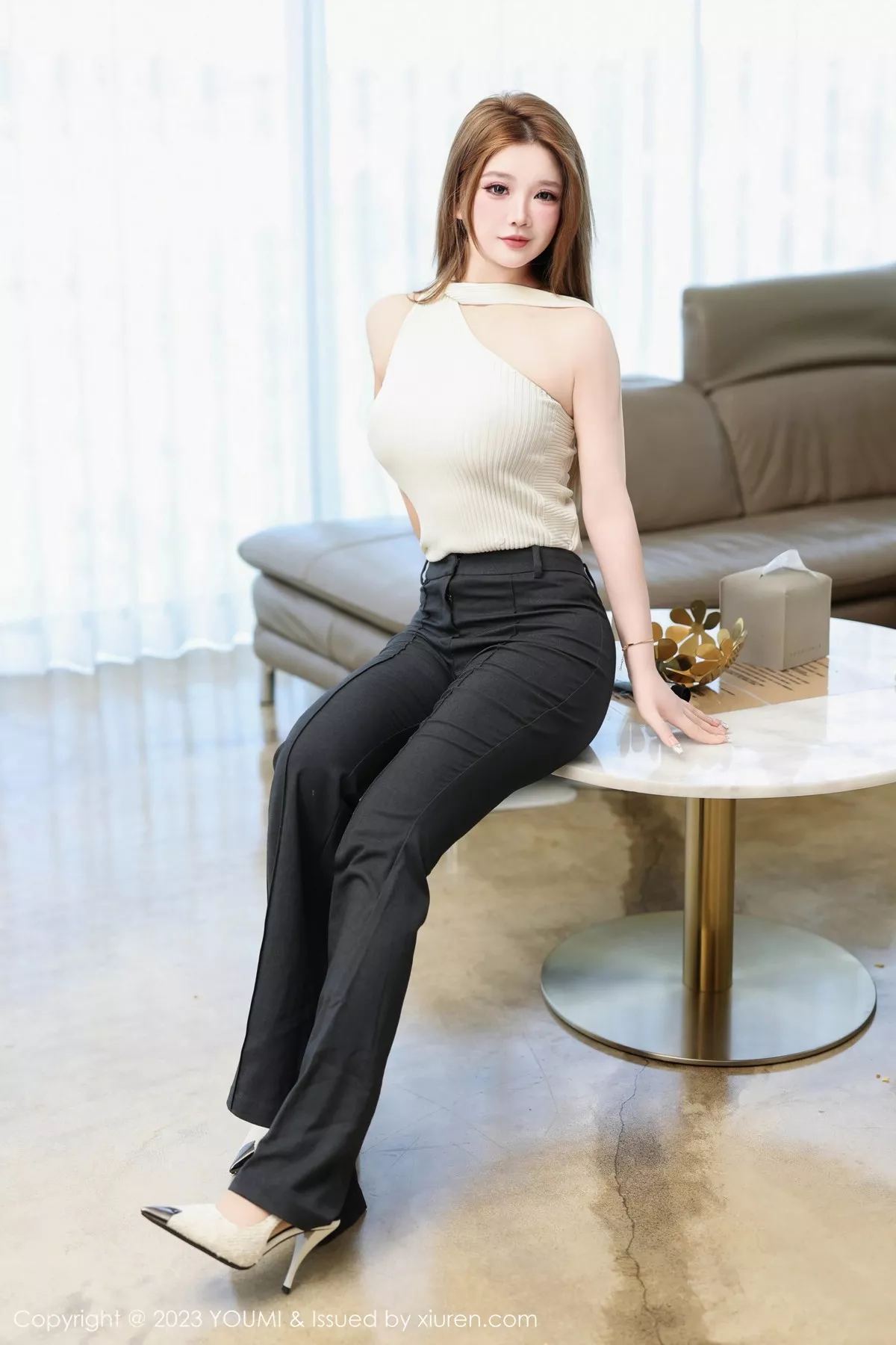 [YouMi尤蜜荟]Vol.995 模特小海臀Rena性感浅色衣配黑色长裤半脱秀浑圆翘臀诱惑写真72P