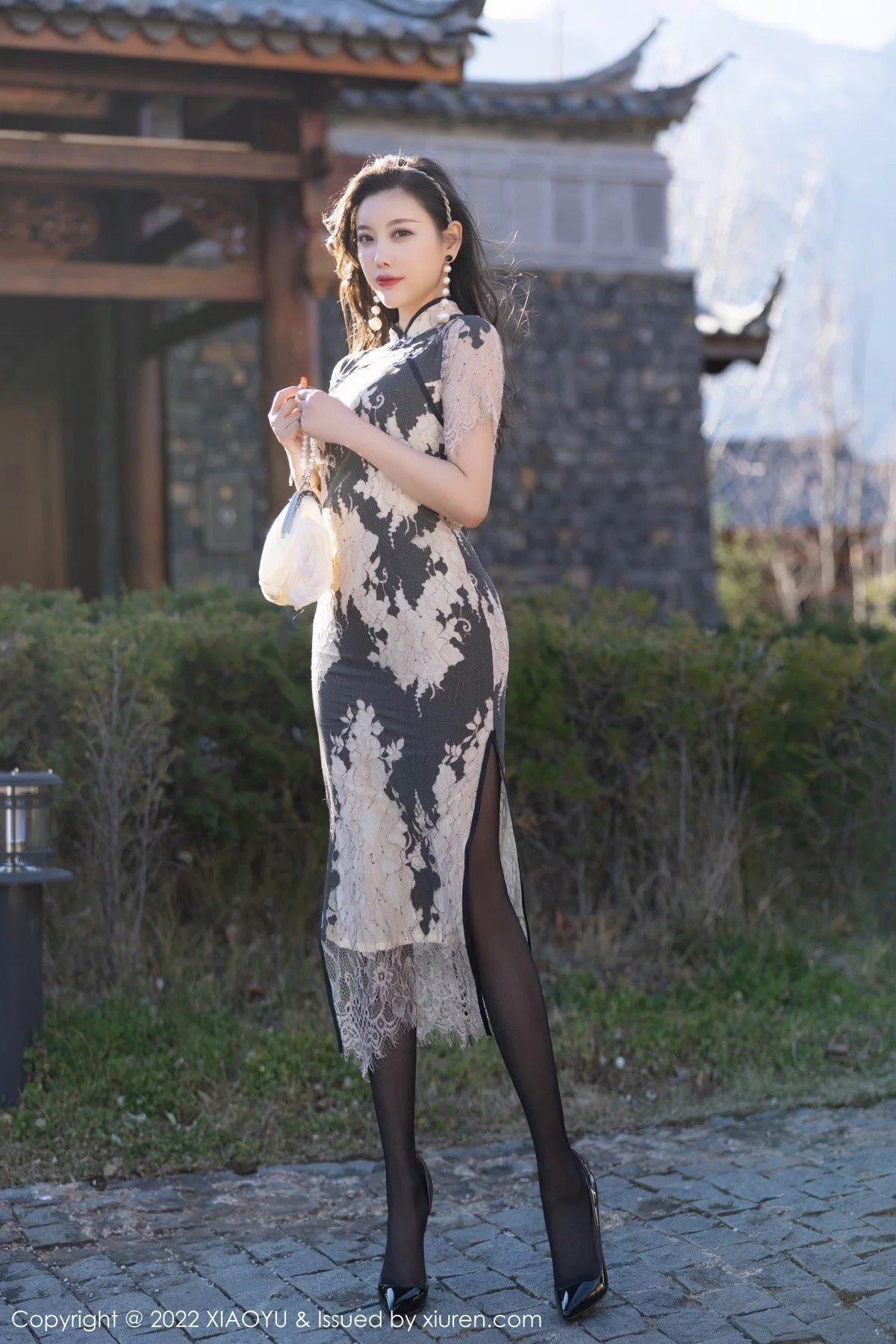 [XiaoYu画语界]Vol.697 女神杨晨晨Yome丽江心愿旅拍米色旗袍配开档黑丝撩人诱惑写真84P