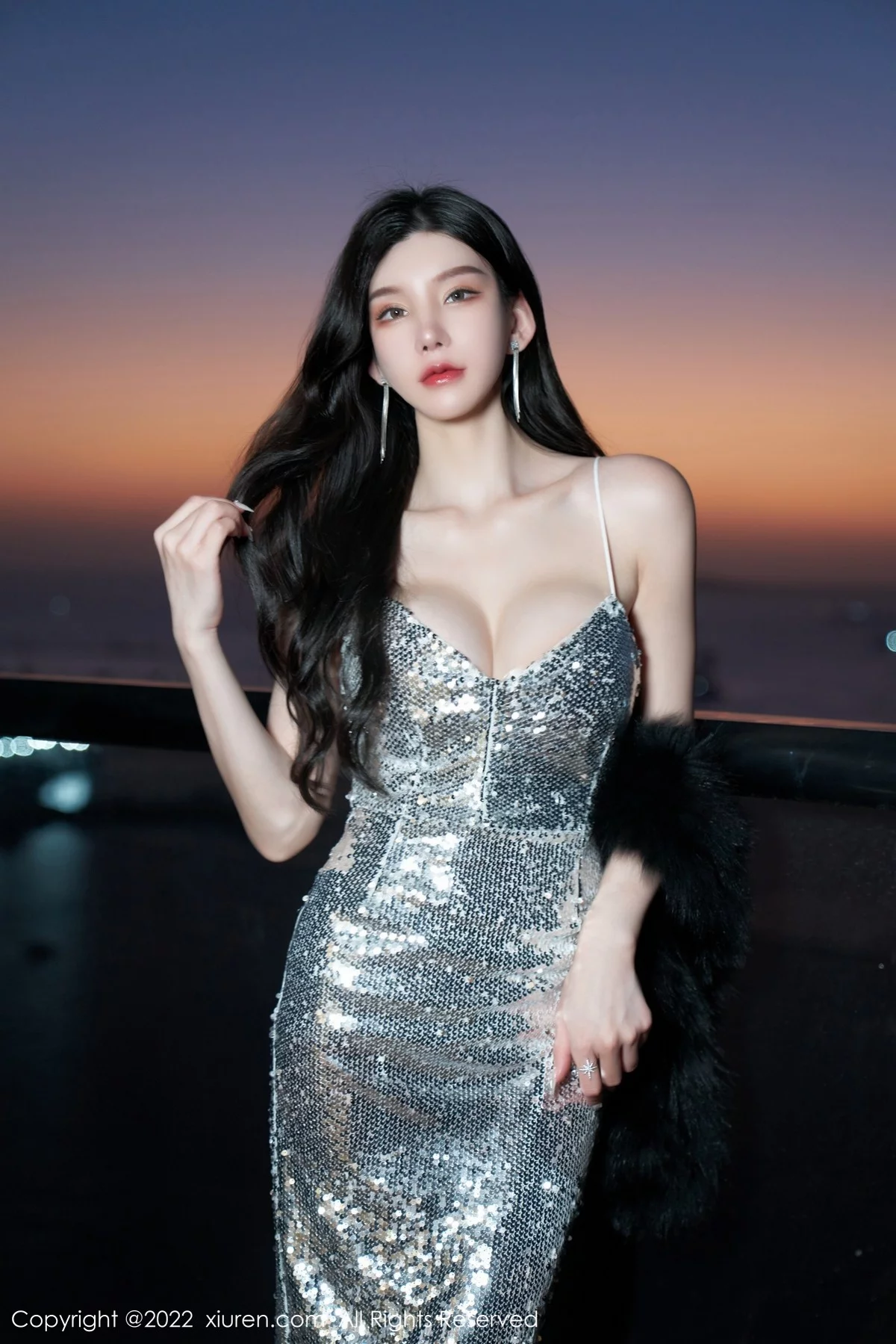 [XiuRen秀人网]No.4628 女神周于希Sally三亚旅拍闪亮银色吊裙配白丝吊袜极致诱惑写真70P