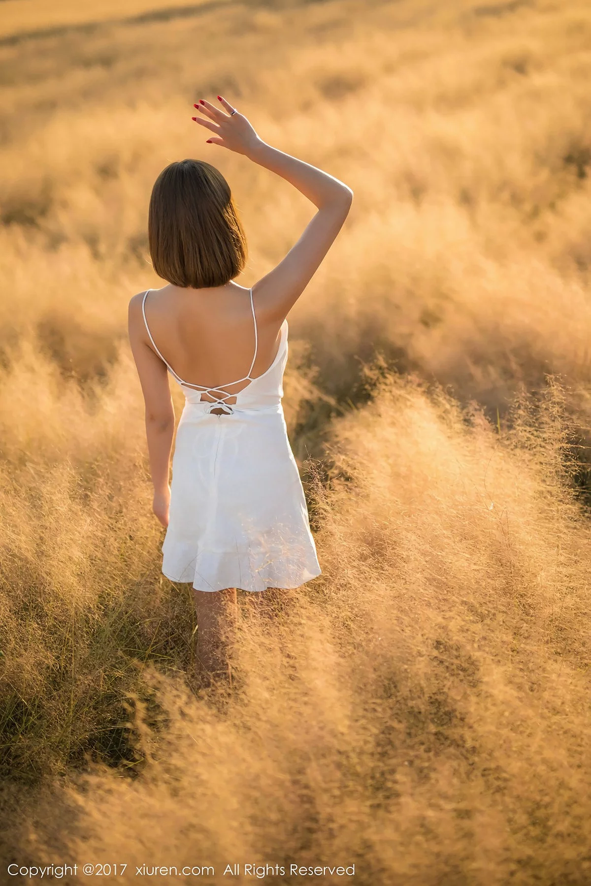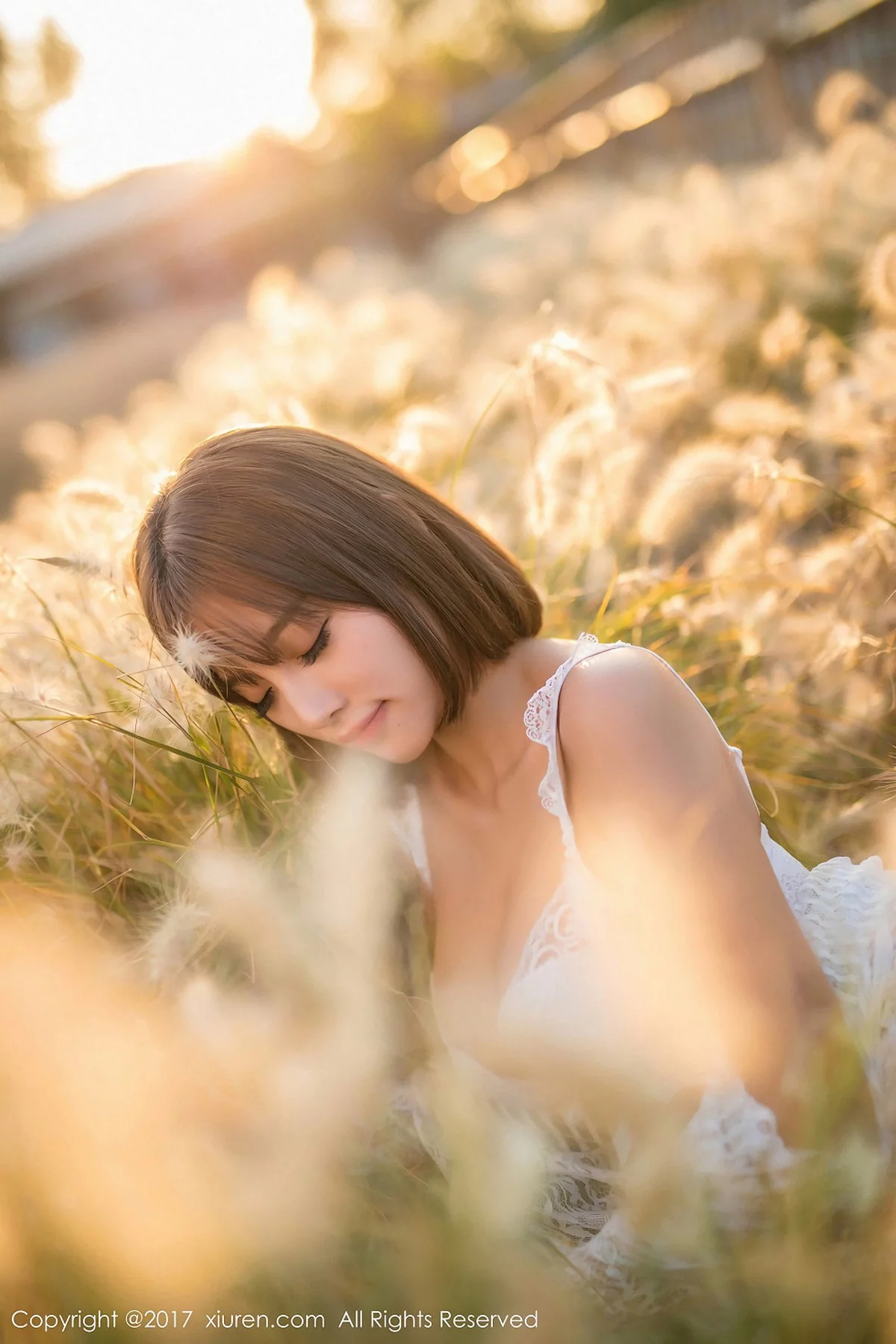 [XiuRen秀人网]No.847 甜美女神杨晨晨户外花丛中白色蕾丝内衣秀完美身材性感写真50P