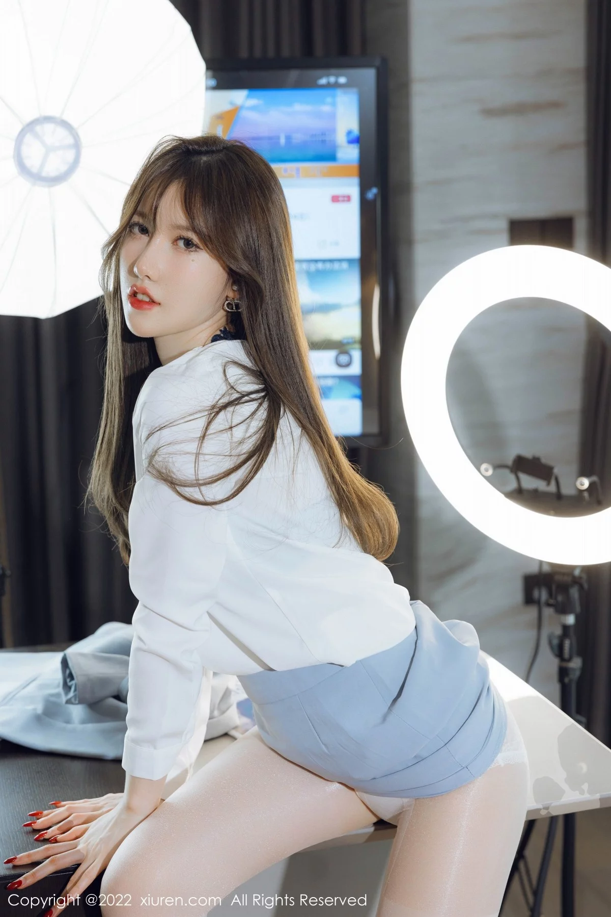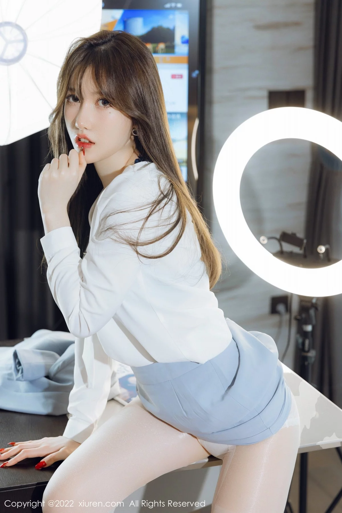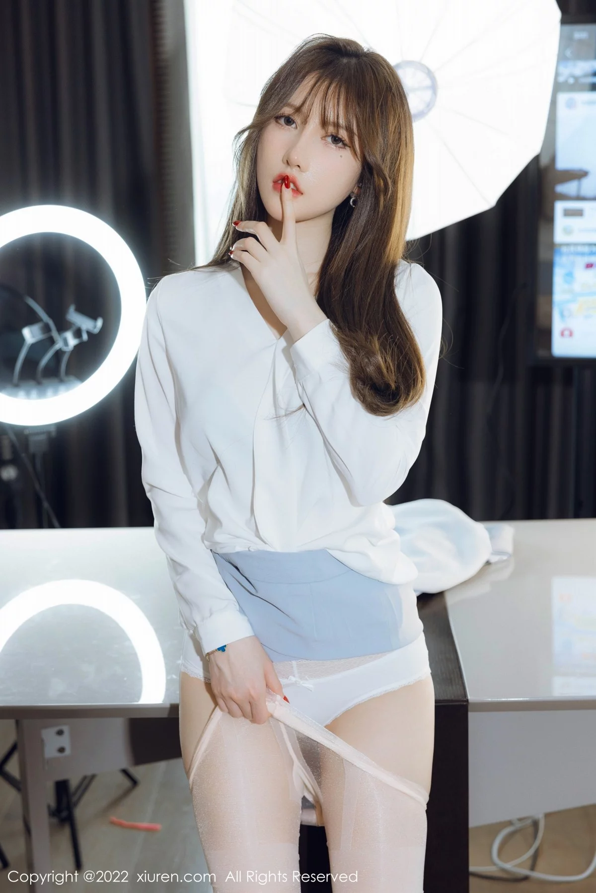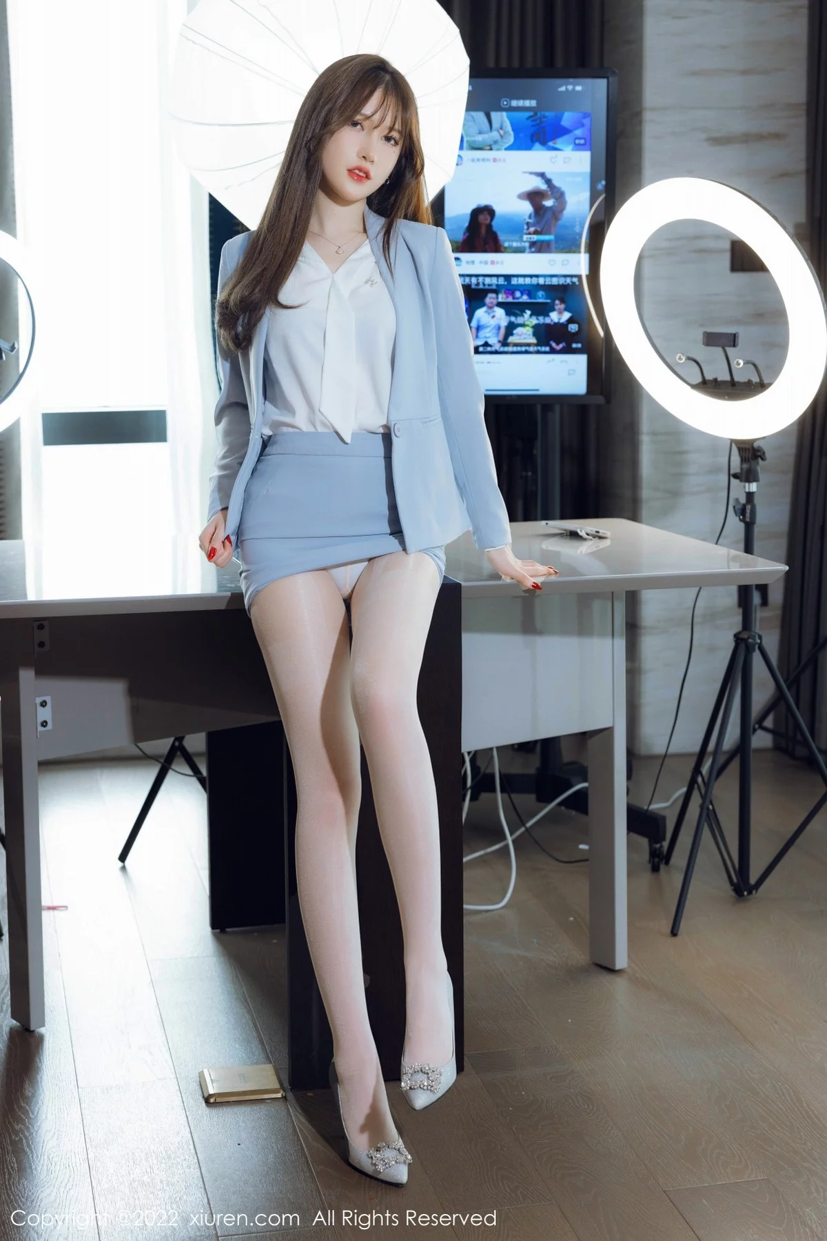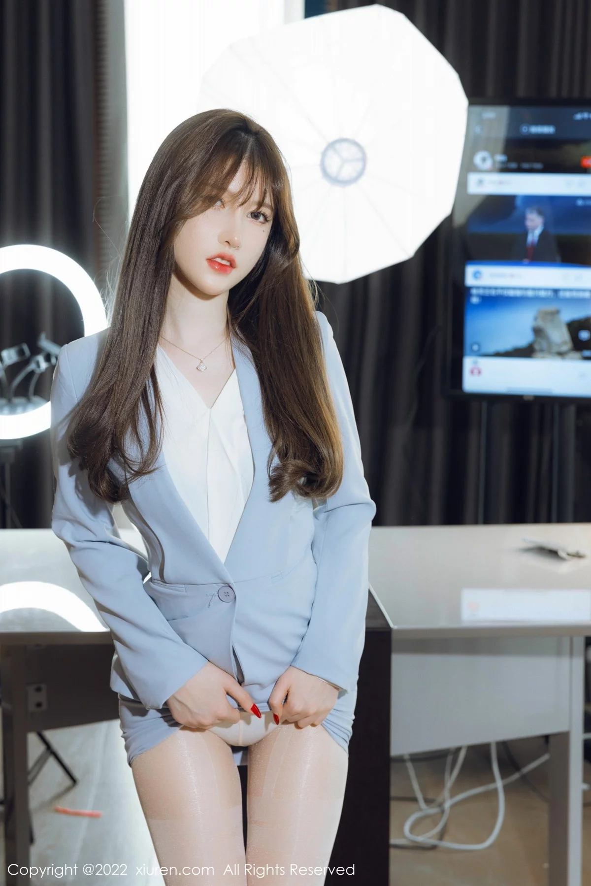 [XiuRen秀人网]No.4658 模特美桃酱蓝色制服系列私房半脱露性感内衣超薄肉丝诱惑写真64P