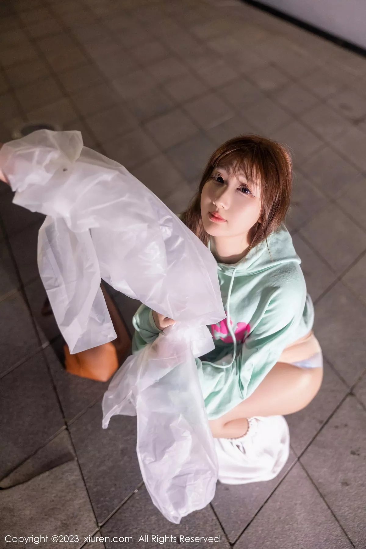 [XiuRen秀人网]No.7072 模特江真真户外绿灰卫衣+性感蓝色蕾丝内衣秀完美身材诱惑写真80P