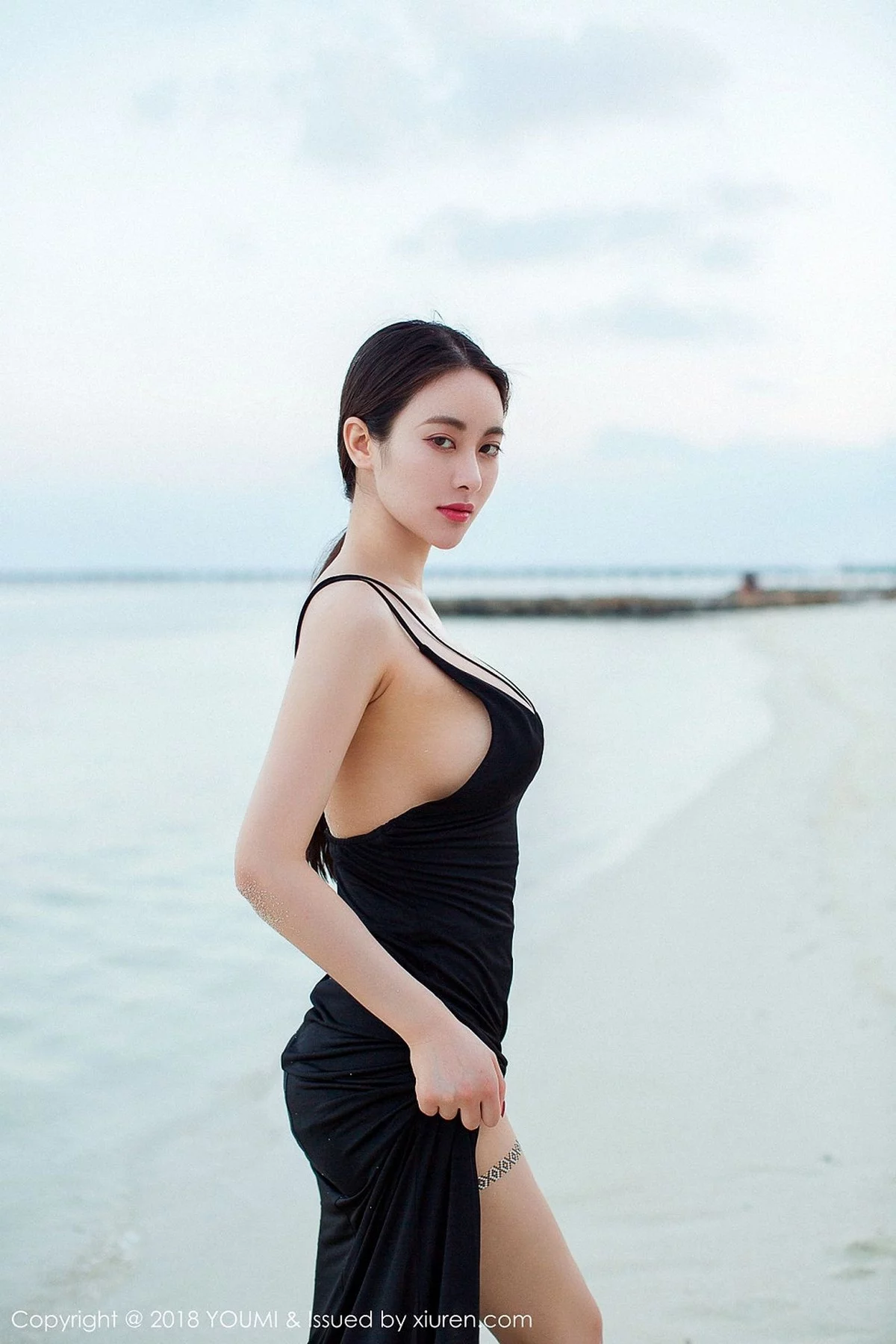 [YouMi尤蜜荟]Vol.105 嫩模Egg-尤妮丝马尔代夫旅拍黑色透视情趣内衣秀豪乳诱惑写真48P