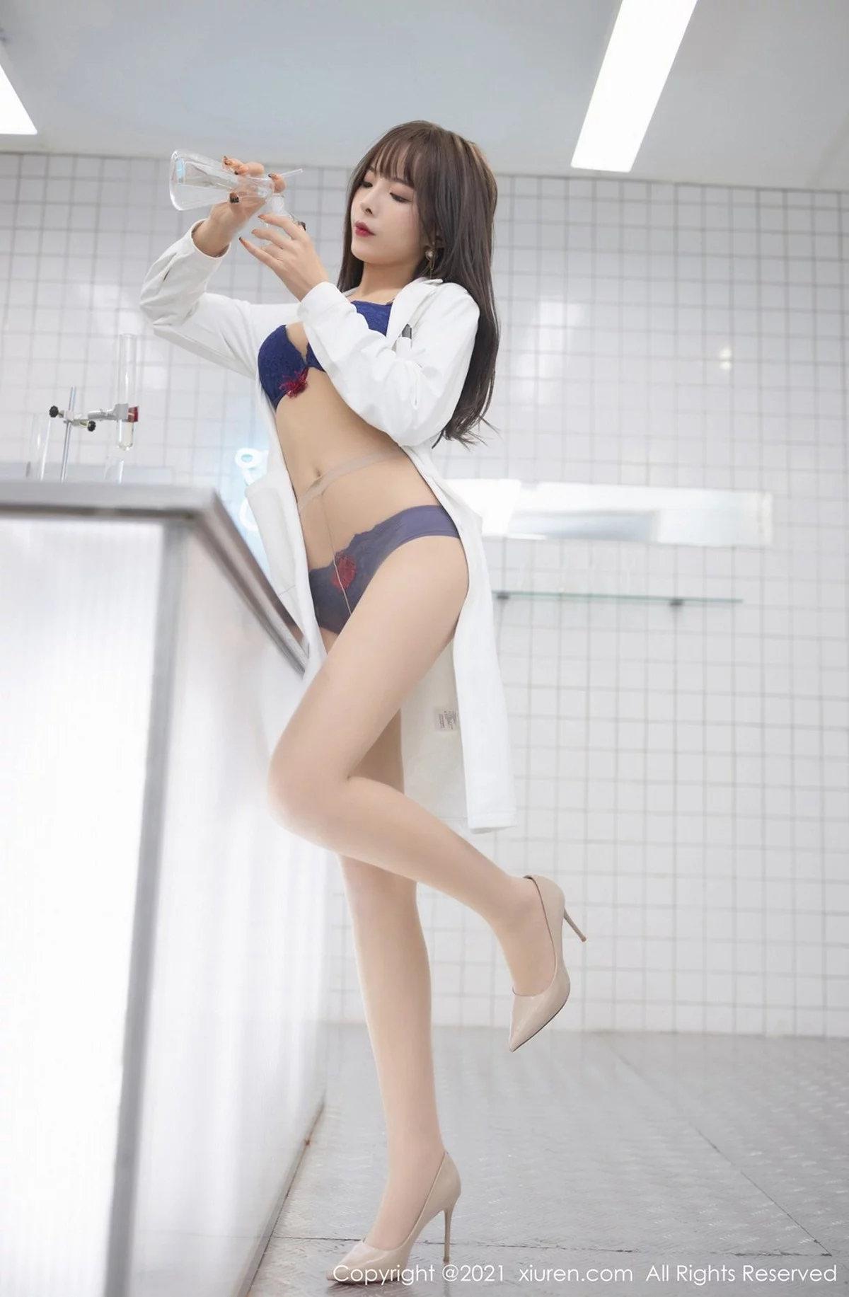 [XiuRen秀人网]No.3079 嫩模陈小喵三亚旅拍实验室试药主题白大褂下开档肉丝裤袜诱惑写真71P