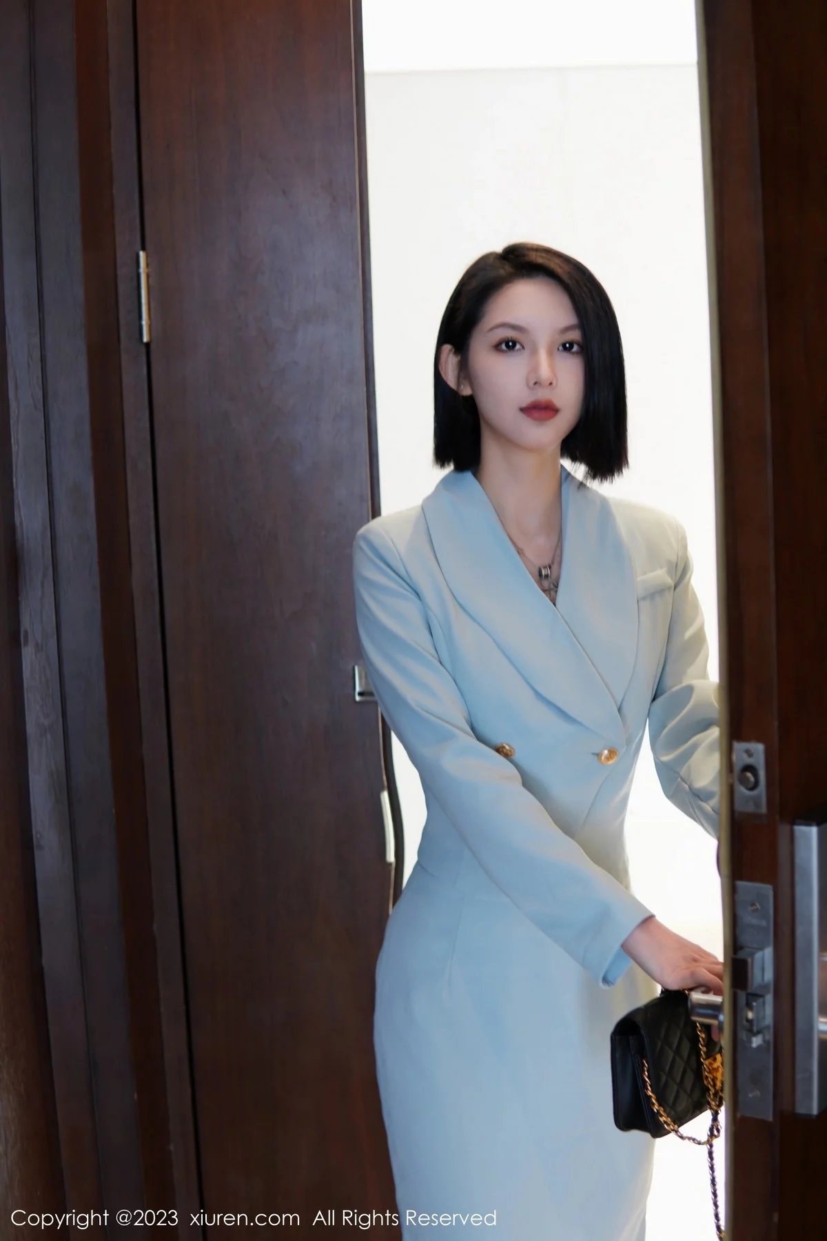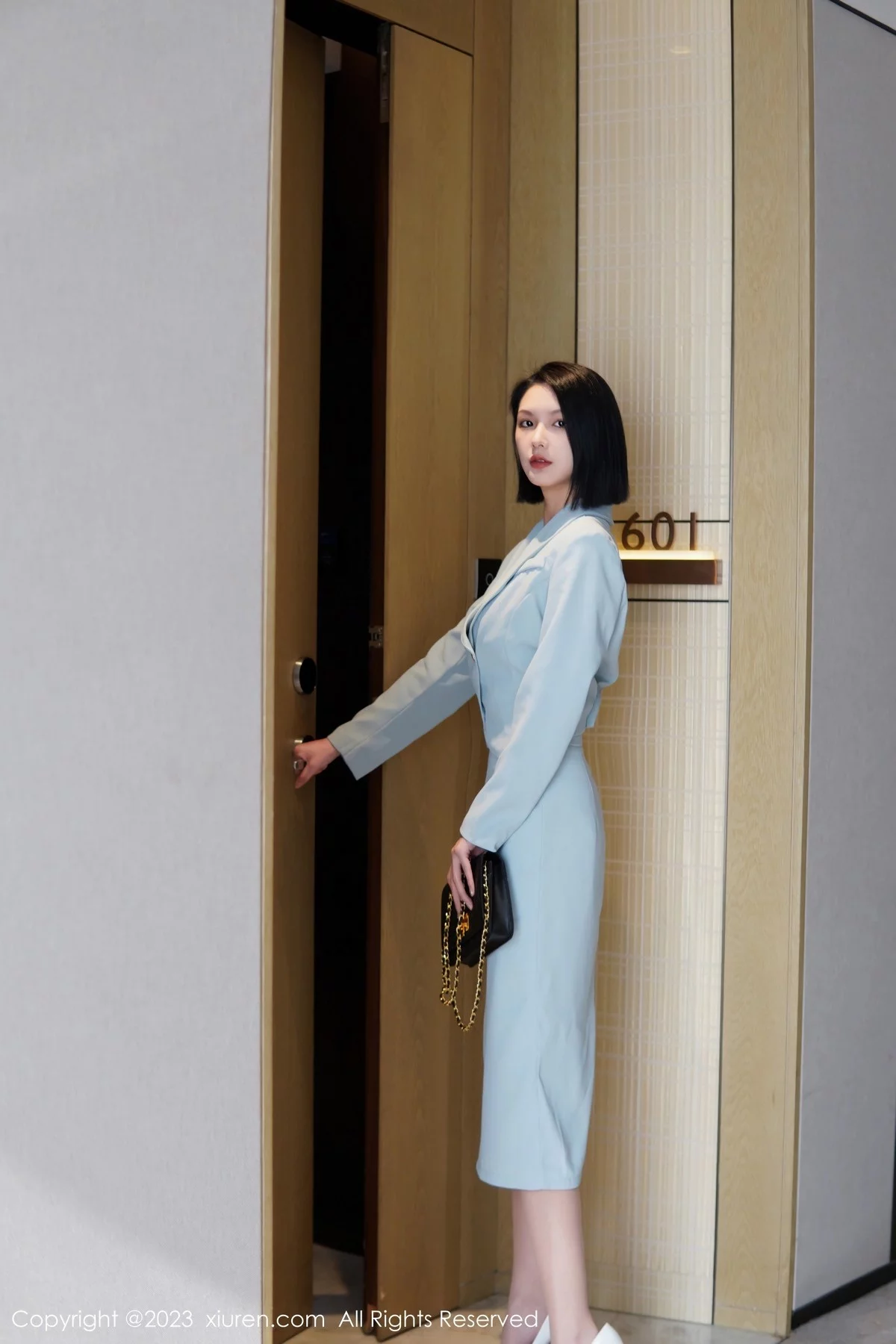 [XiuRen秀人网]No.6885 模特乔一一性感淡蓝色Ol服饰露墨绿色内衣配原色丝袜诱惑写真74P