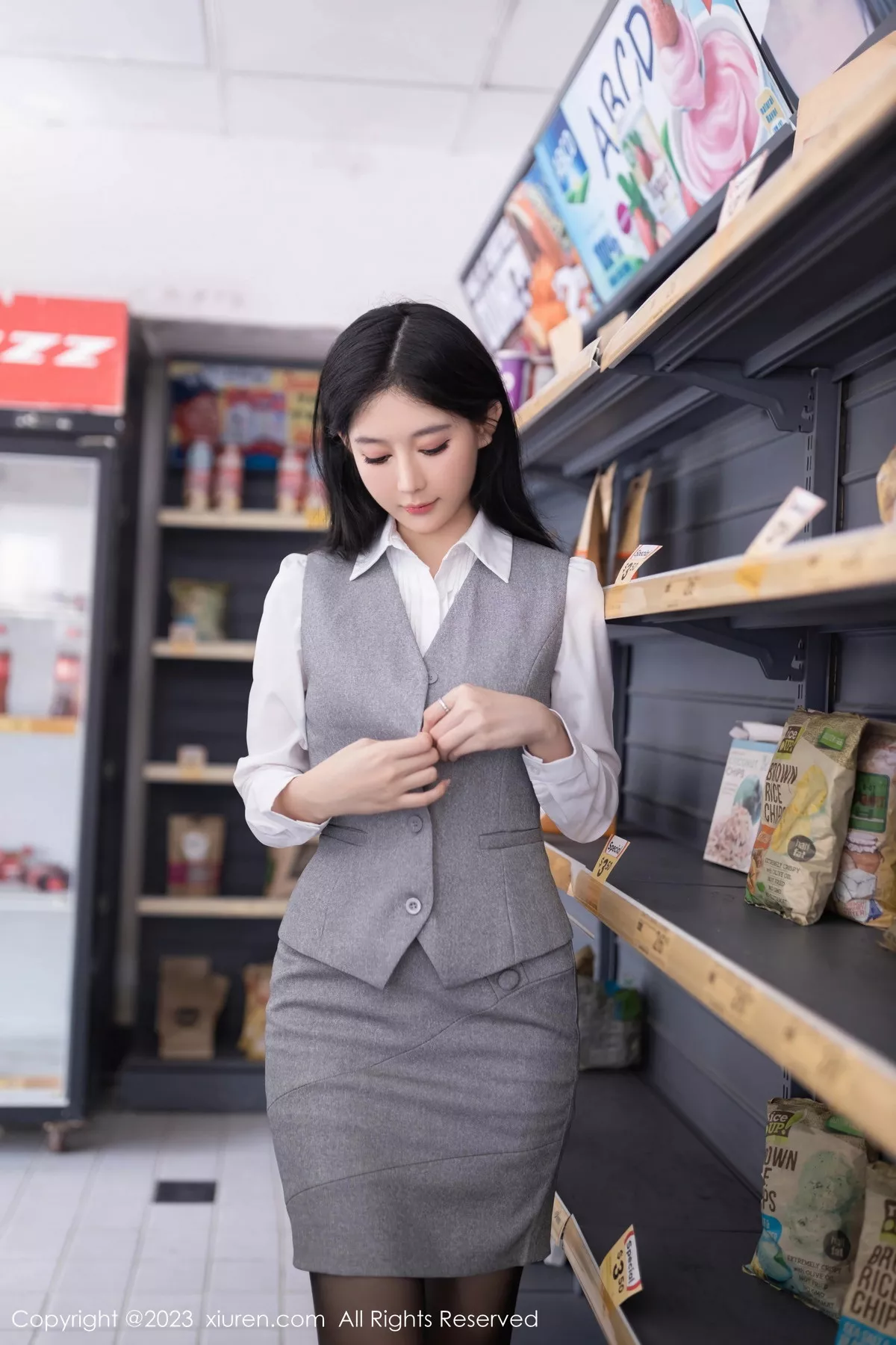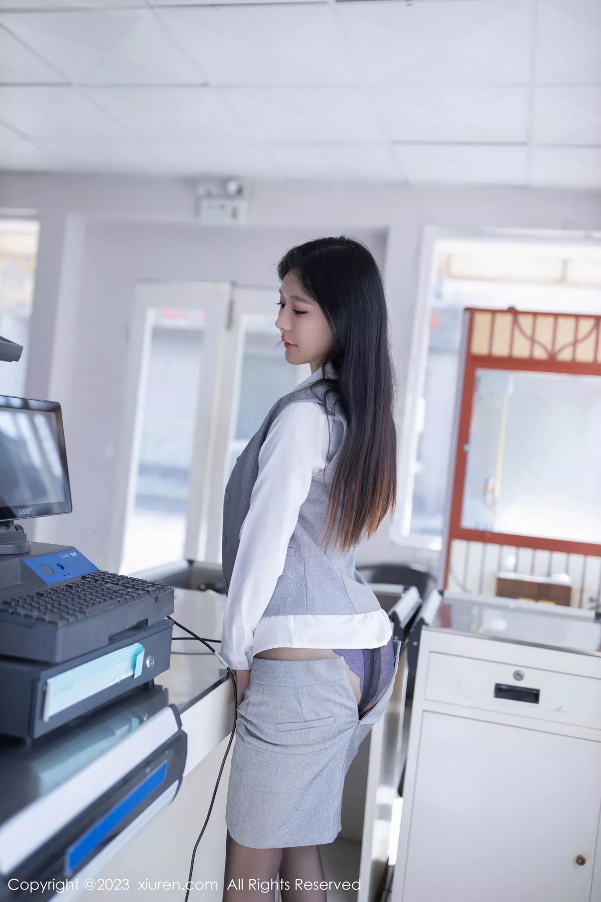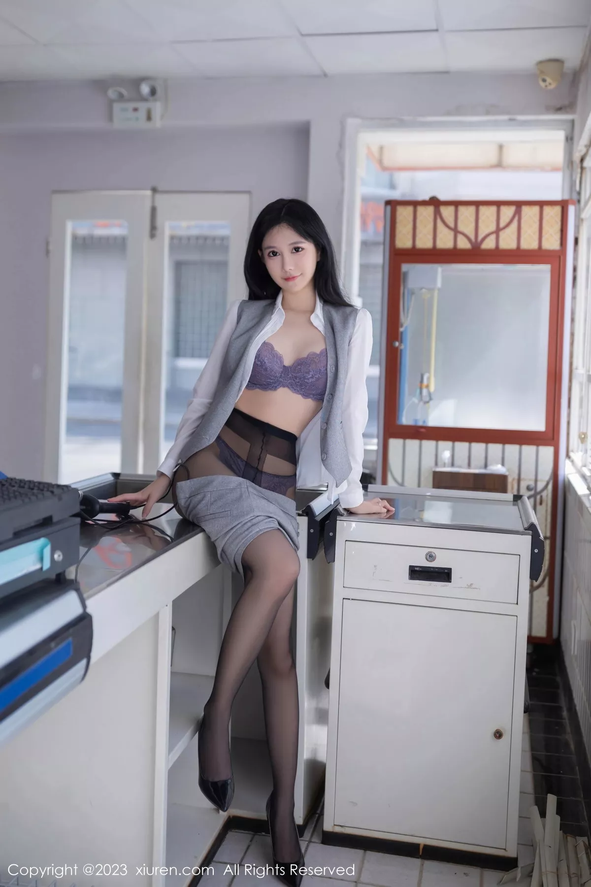 [XiuRen秀人网]No.7684 模特幼幼性感灰色短裙制服露紫色蕾丝内衣秀完美身姿诱惑写真80P