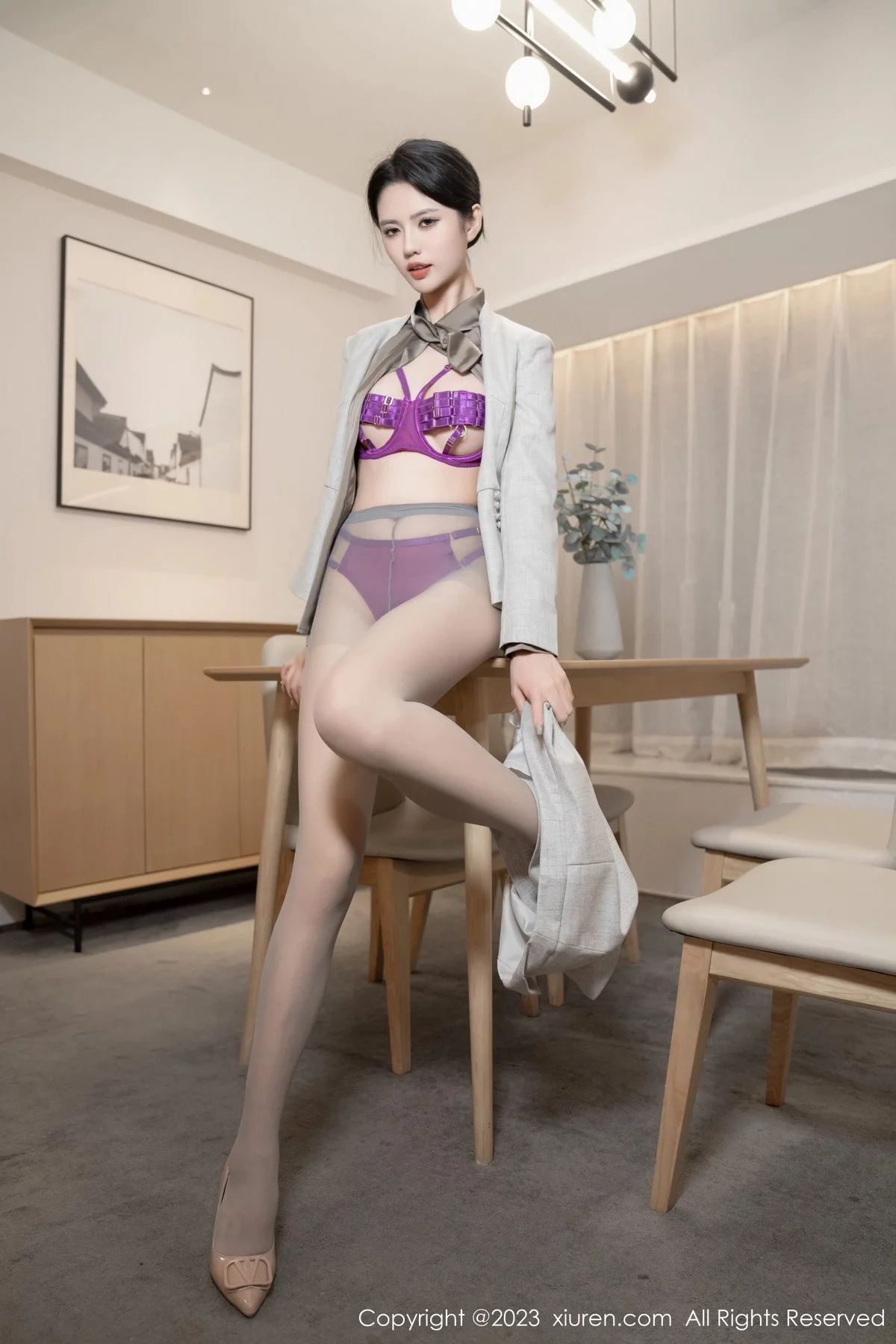 [XiuRen秀人网]No.7845 模特浅浅Danny性感紫色情趣内衣配超薄灰丝秀丰腴身姿诱惑写真82P