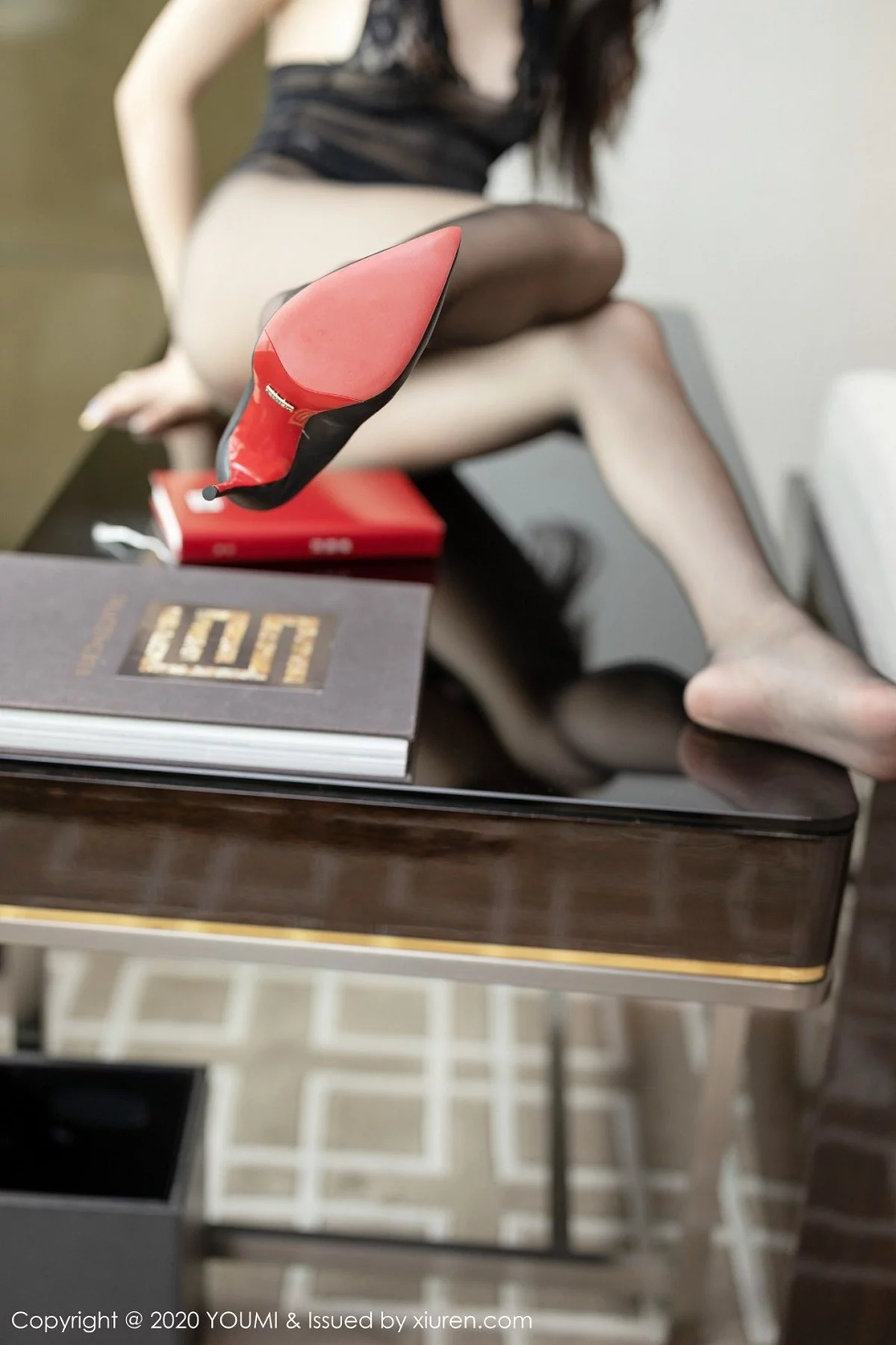 [YouMi尤蜜荟]Vol.446 女神周于希Sandy黑色镂空内衣配超薄无内黑丝极致魅惑写真63P