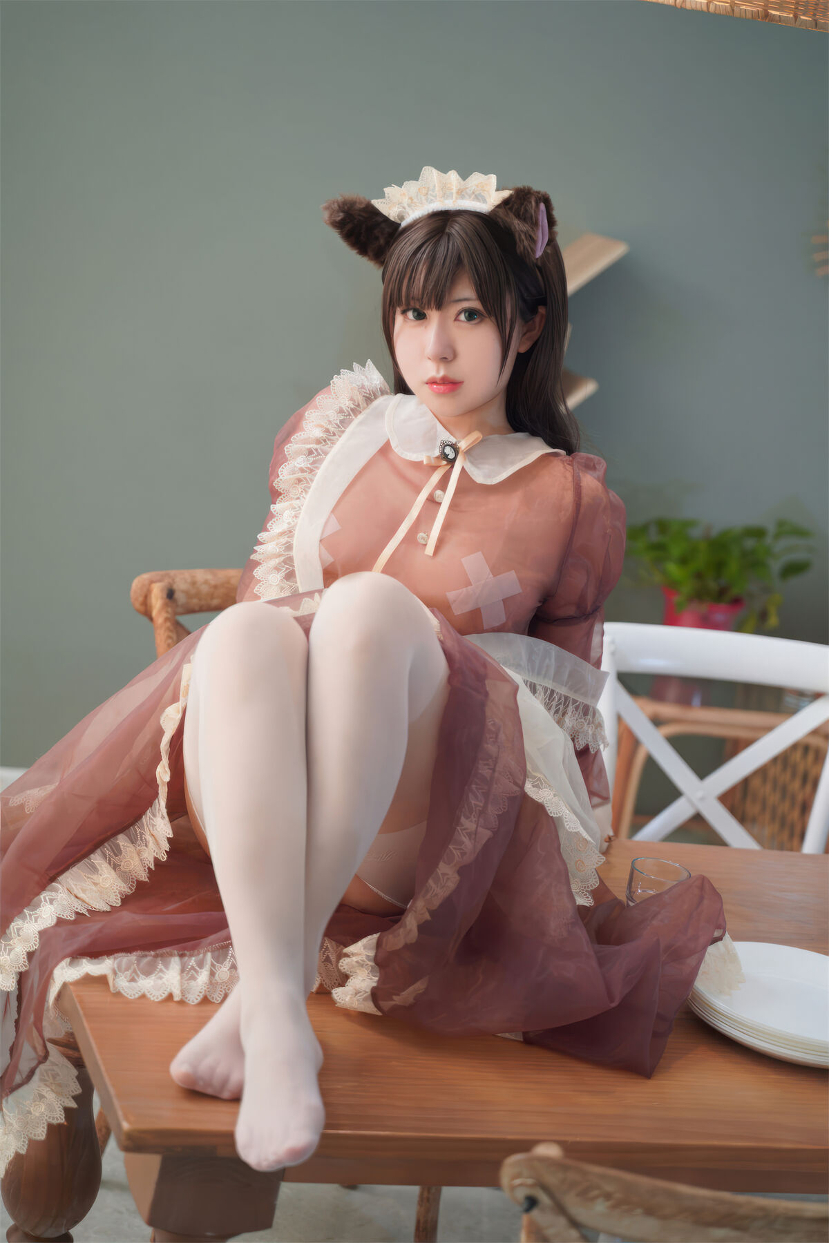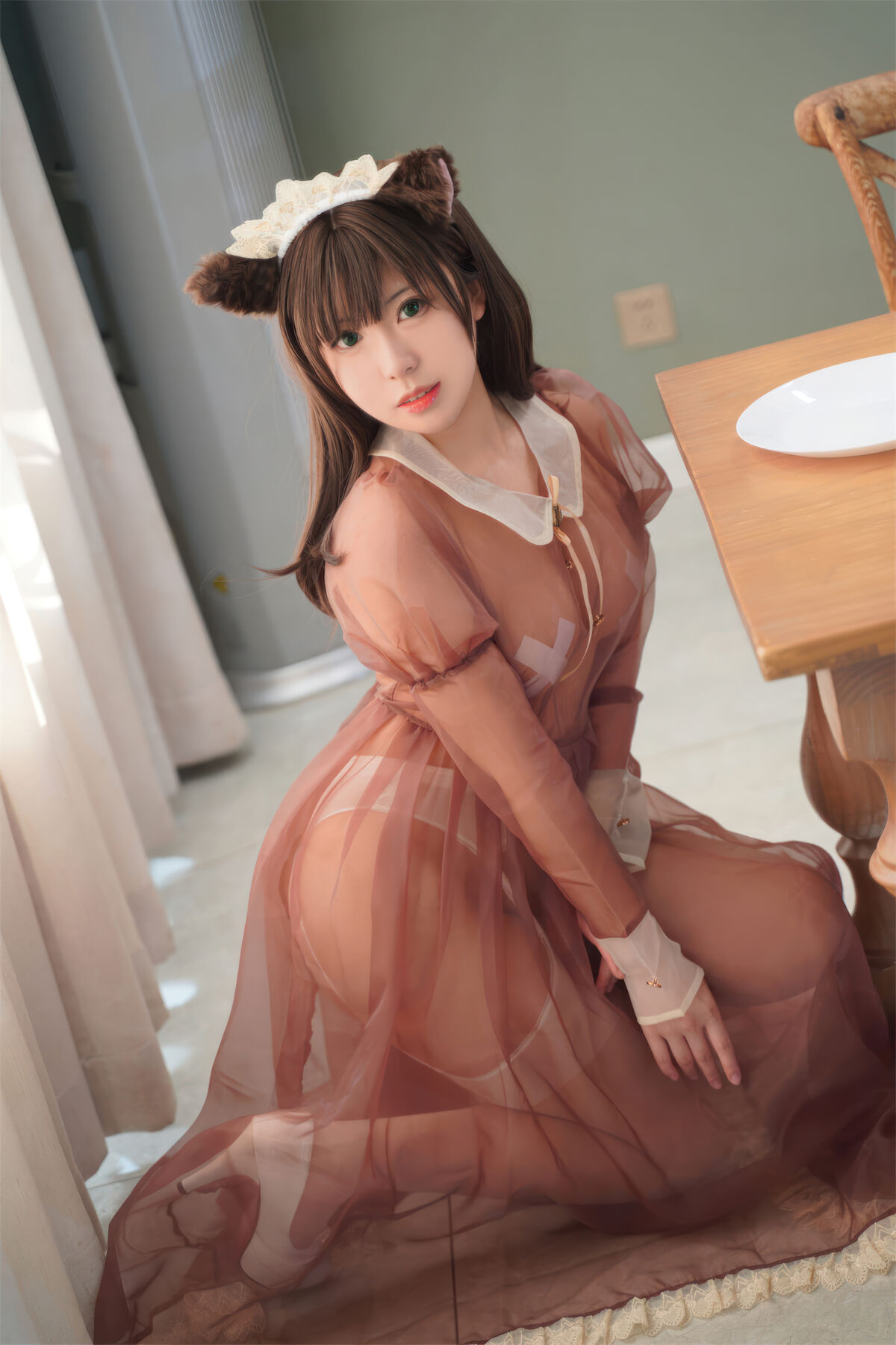 Coser@虎森森 – 棕色透明女仆