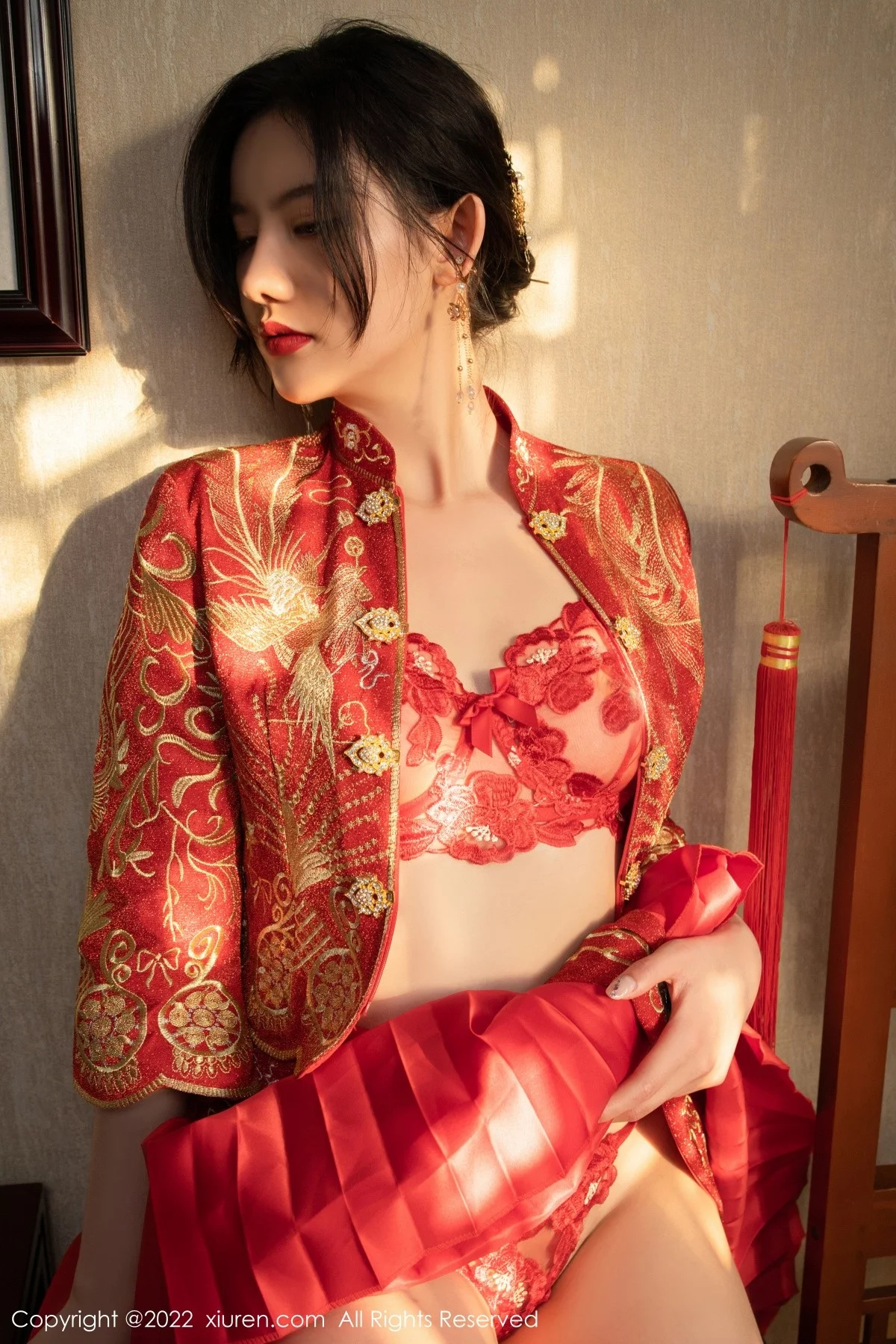 [XiuRen秀人网]No.5319 模特就是阿朱啊云南旅拍性感红色喜服露轻透情趣内衣诱惑写真70P