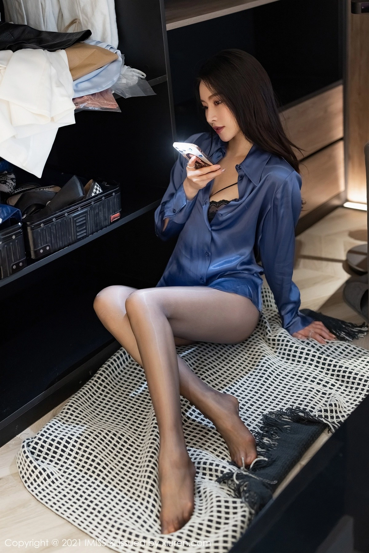 [IMISS爱蜜社]Vol.605 气质美女艺轩私房暖色调主题薄透衬衣配肉丝裤袜诱惑写真84P
