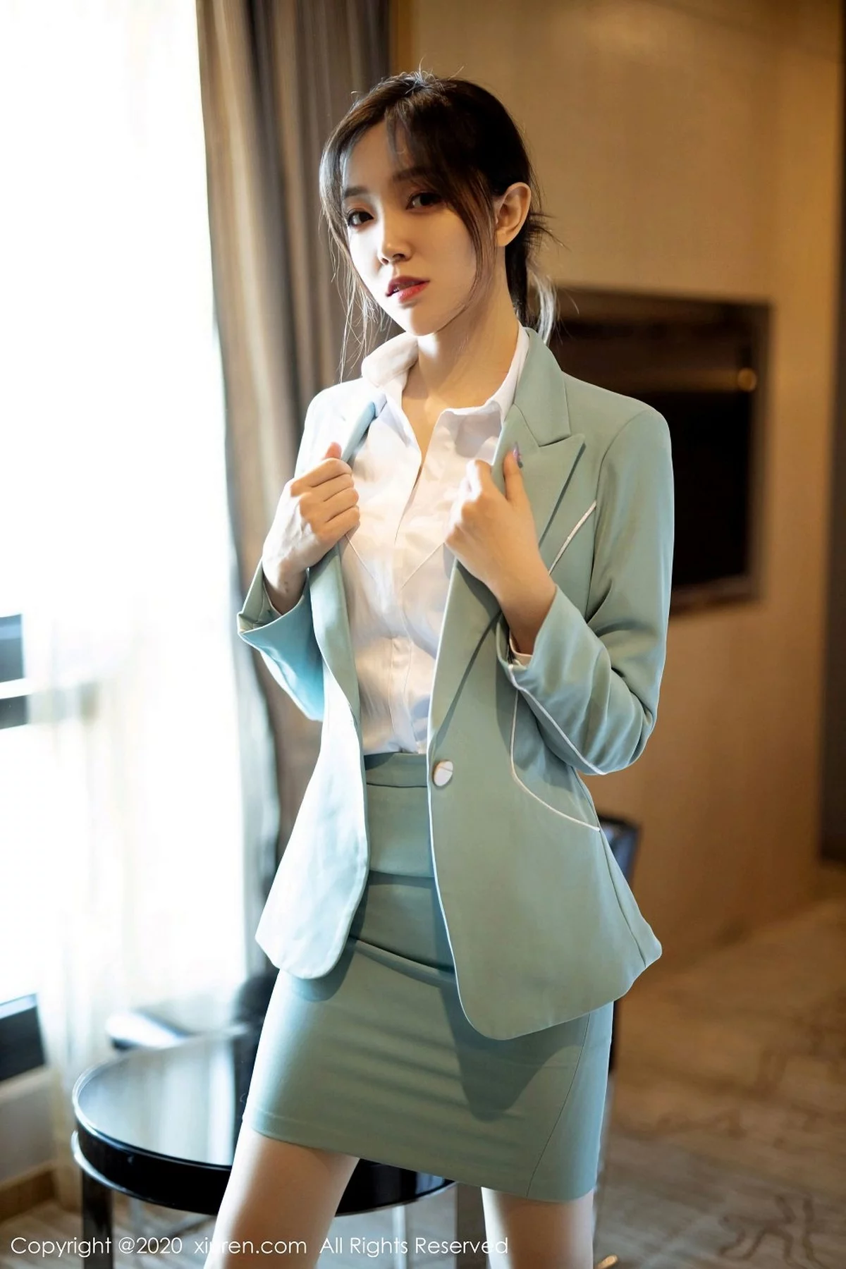 [XiuRen秀人网]No.2797 嫩模九千柒柒飒爽率性西装主题半脱露性感内衣秀苗条身材写真44P
