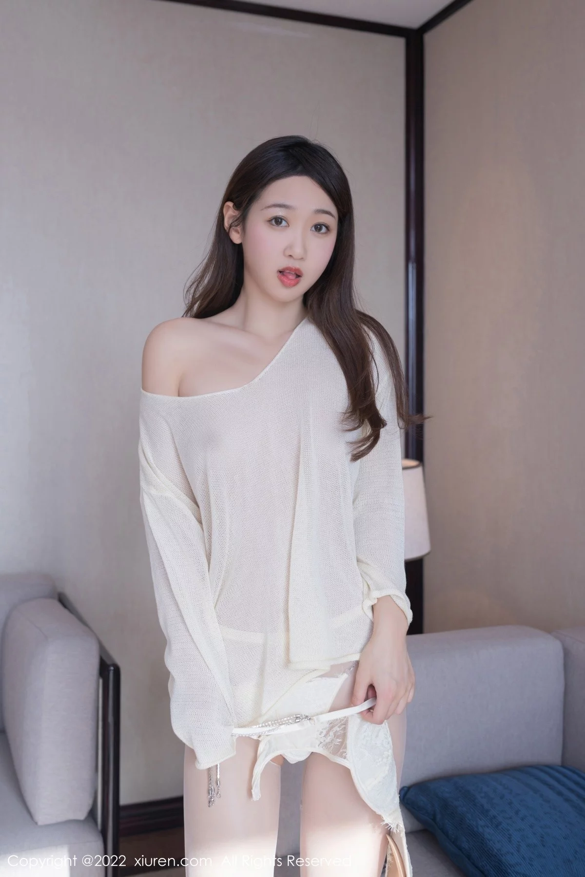 [XiuRen秀人网]No.4884 模特唐安琪珠三角旅拍脱白色清透上衣露蕾丝内衣撩人诱惑写真80P