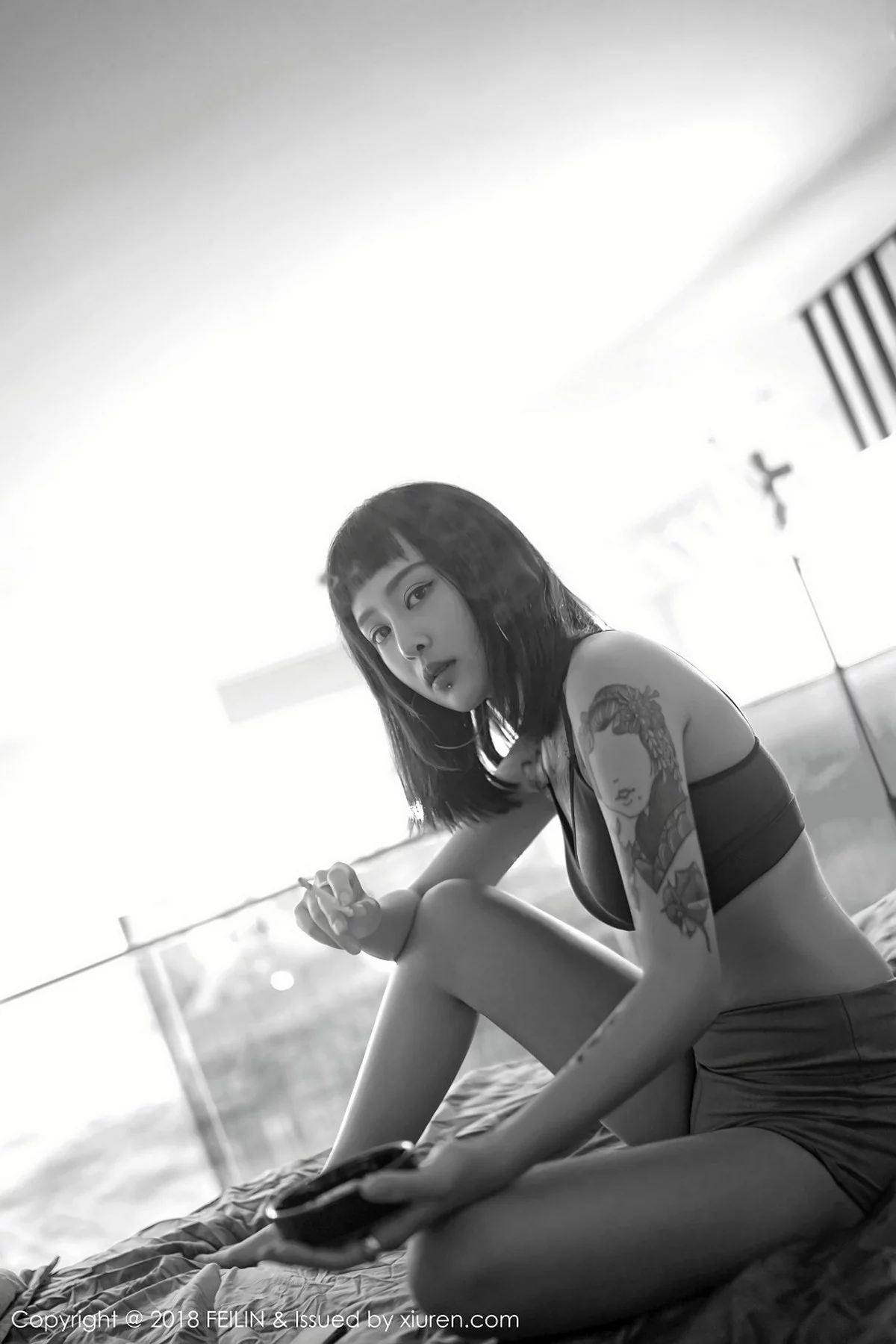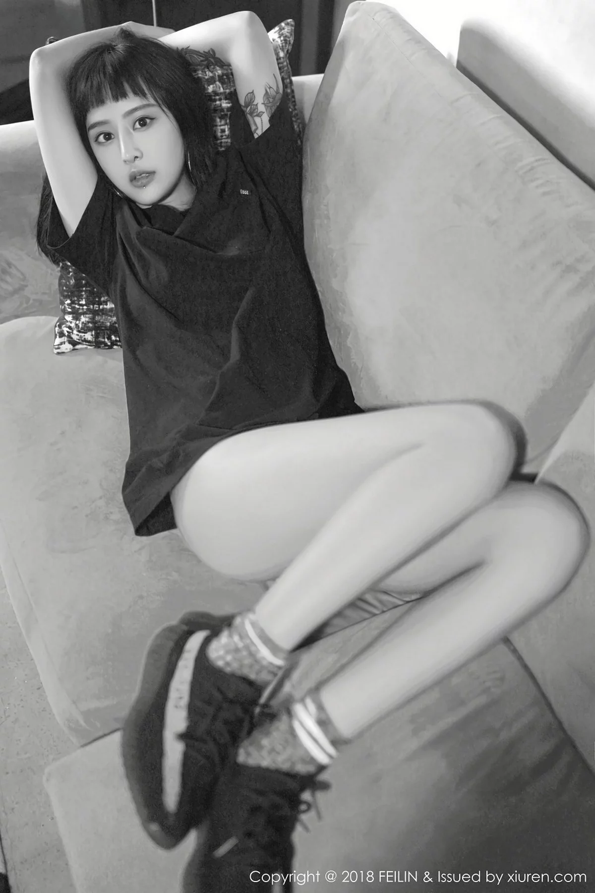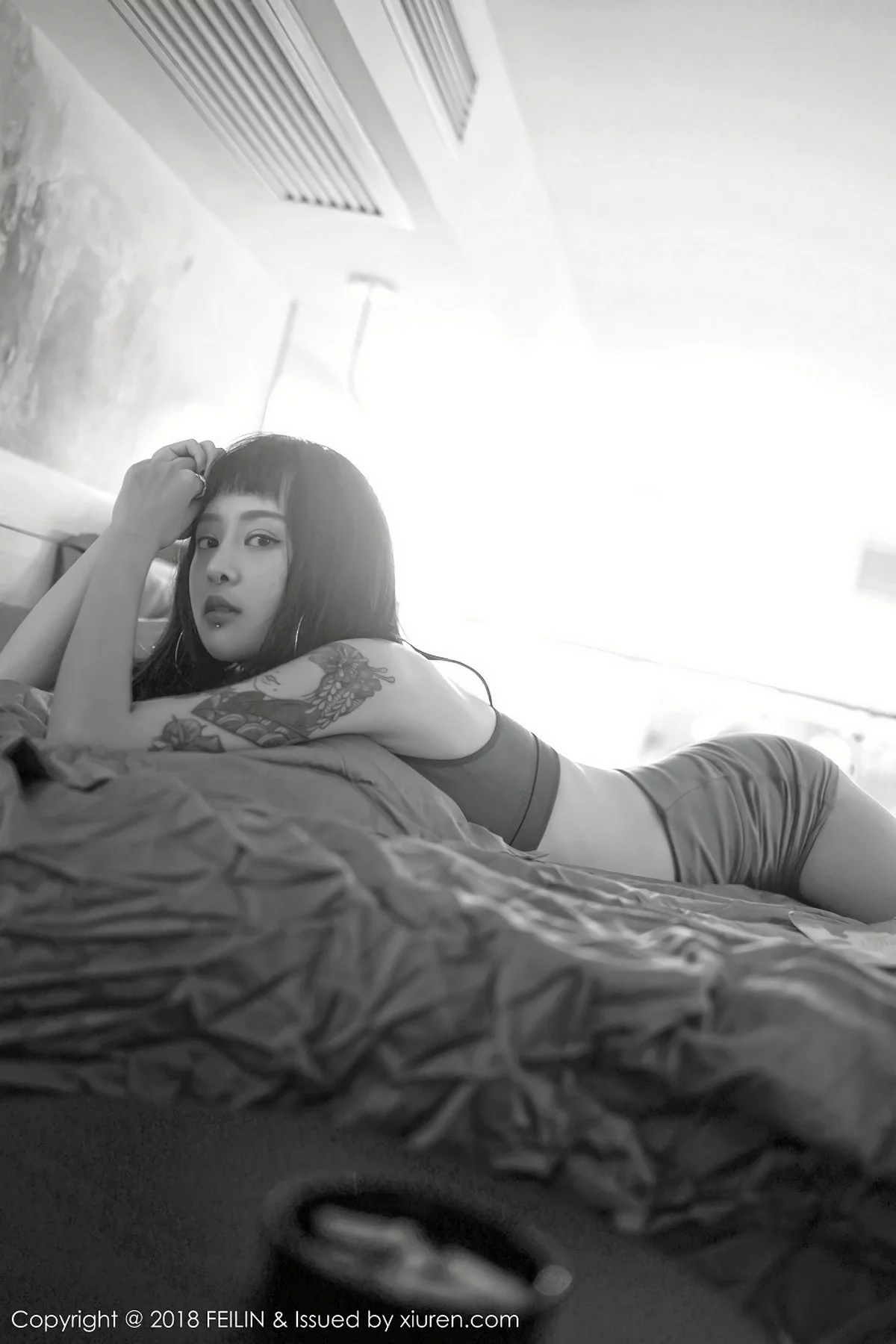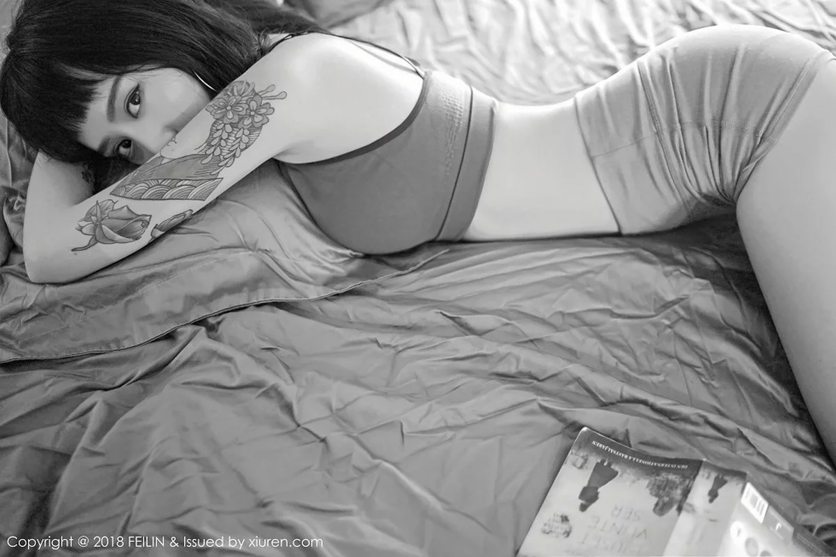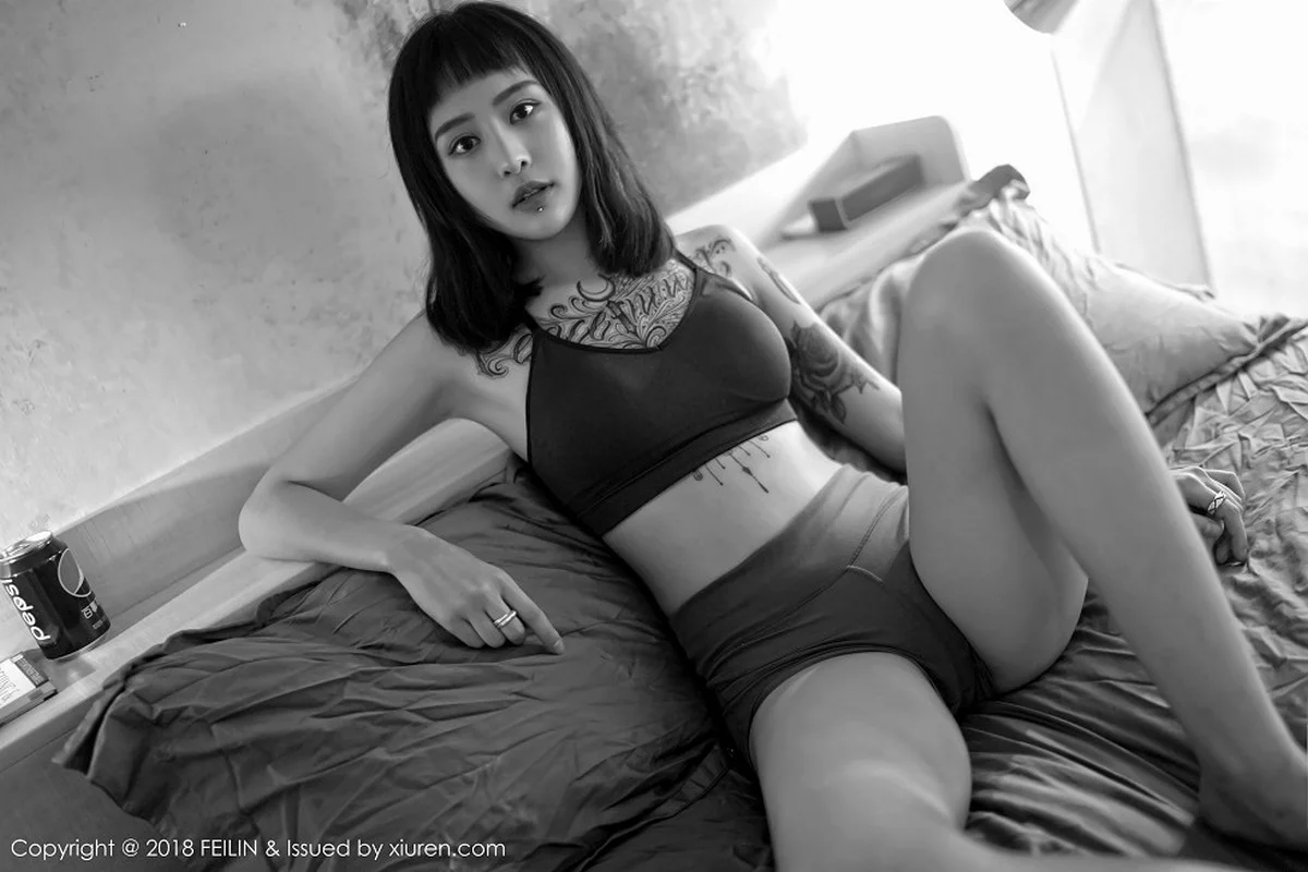 [FeiLin嗲囡囡]Vol.129 嫩模赵艺璇居家私房性感内衣黑白风系列配彩色纹身写真39P