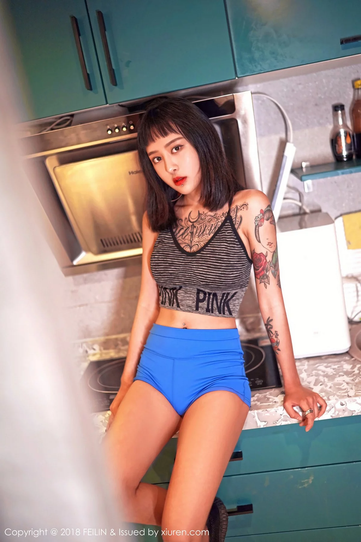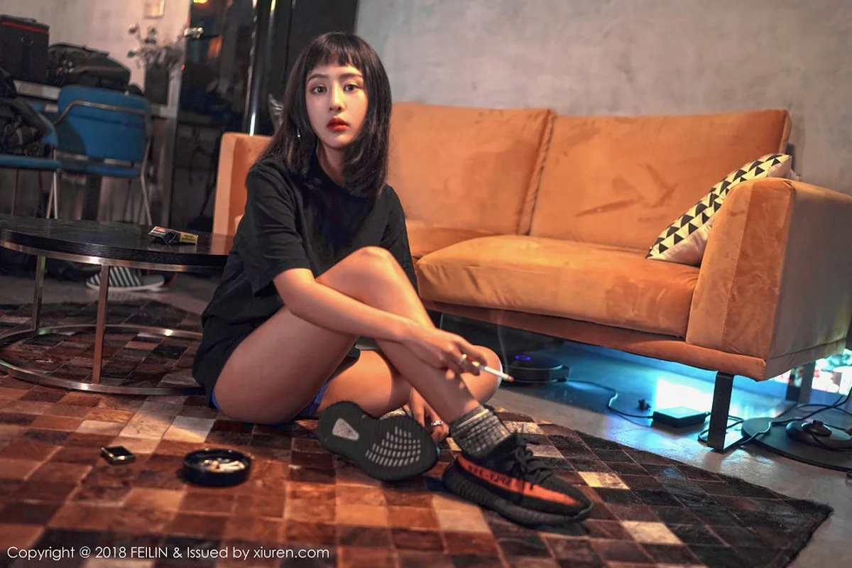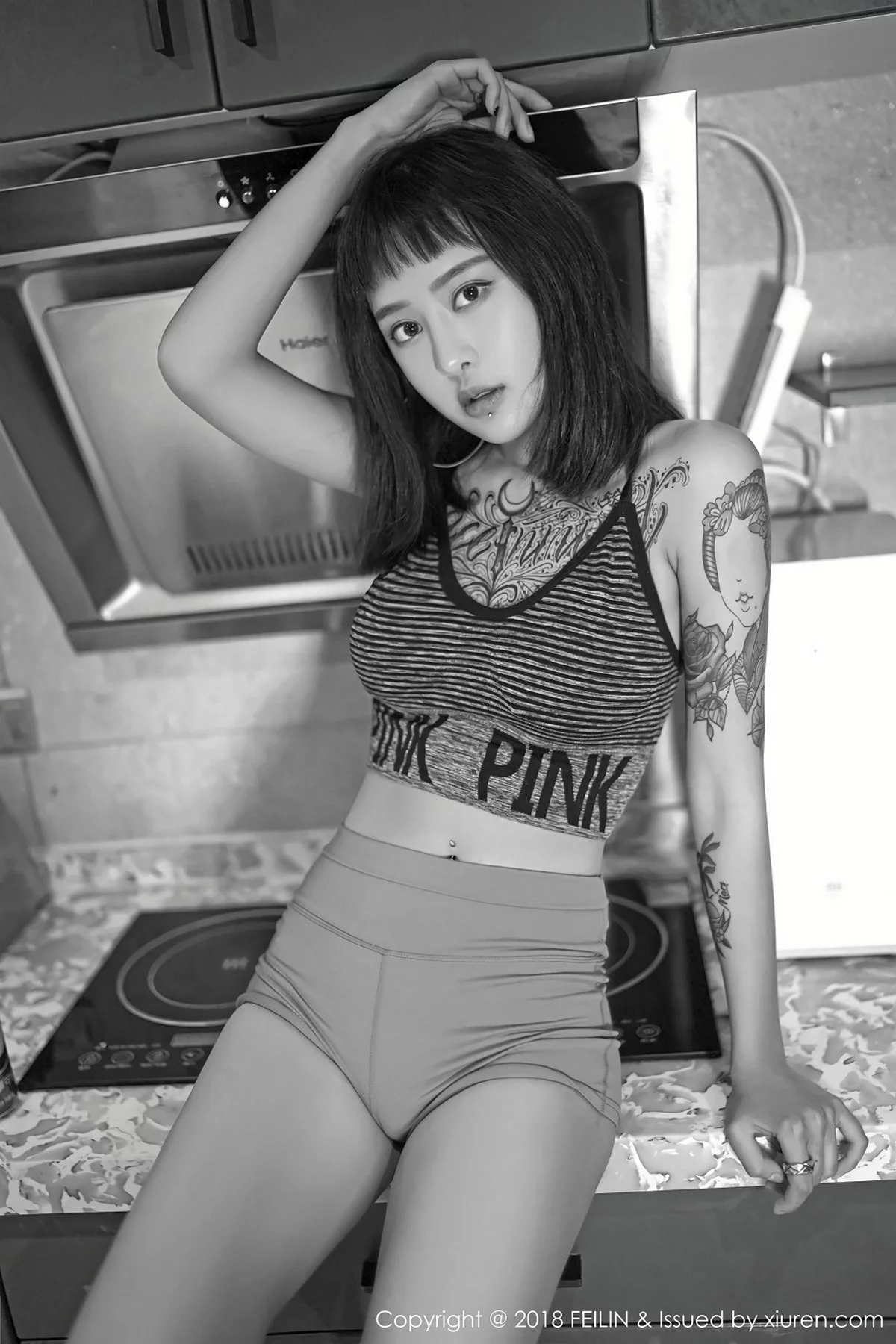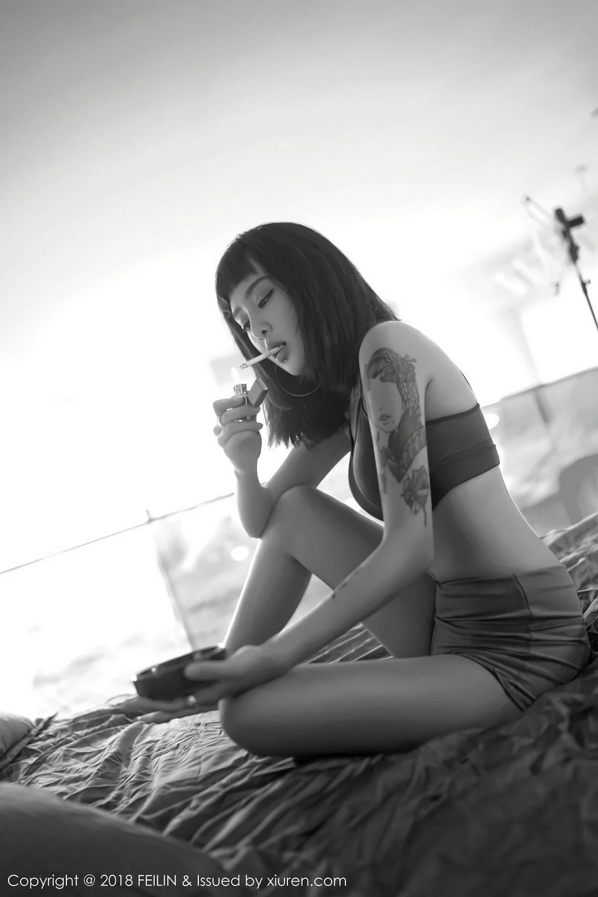 [FeiLin嗲囡囡]Vol.129 嫩模赵艺璇居家私房性感内衣黑白风系列配彩色纹身写真39P