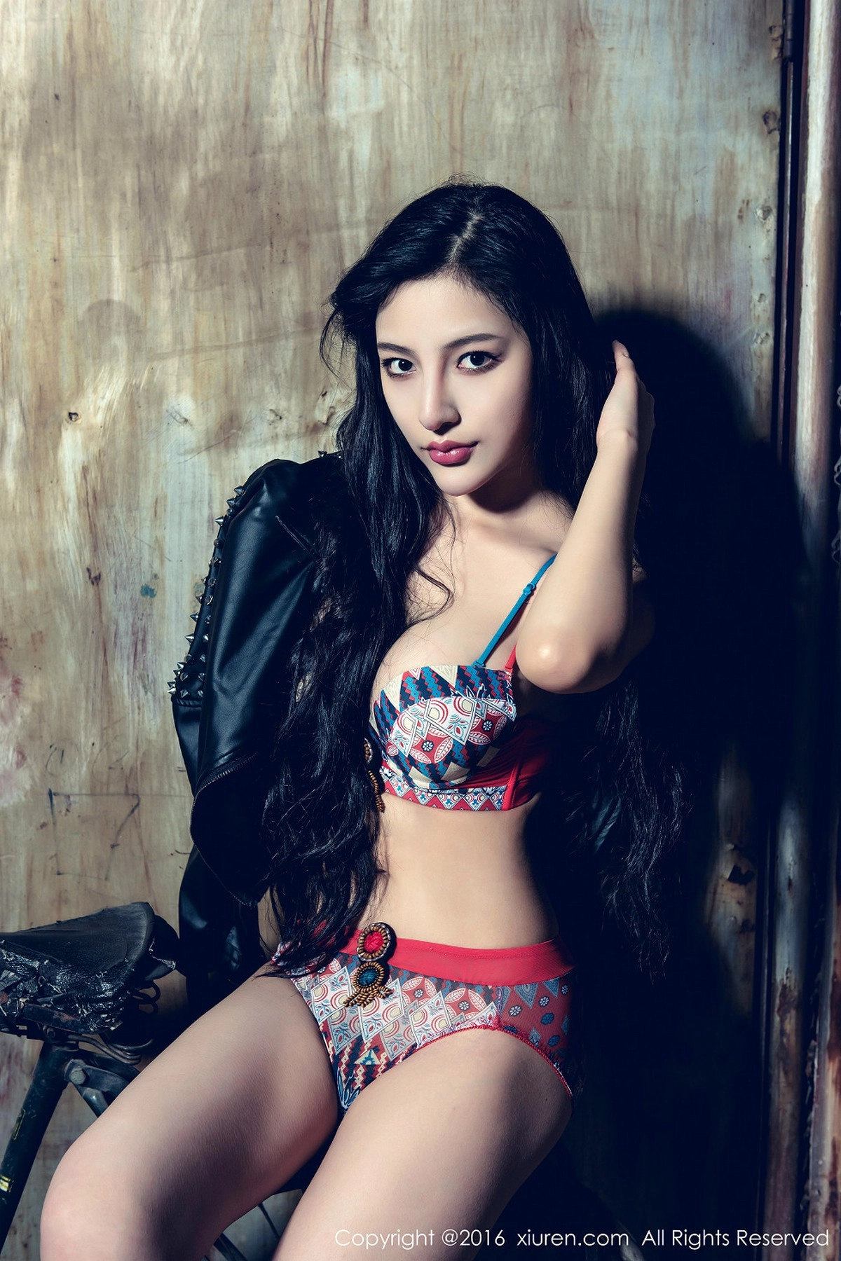 [XiuRen秀人网]No.625 嫩模萌琪琪Irene高叉猩红色连体比基尼半脱秀豪乳诱惑写真59P