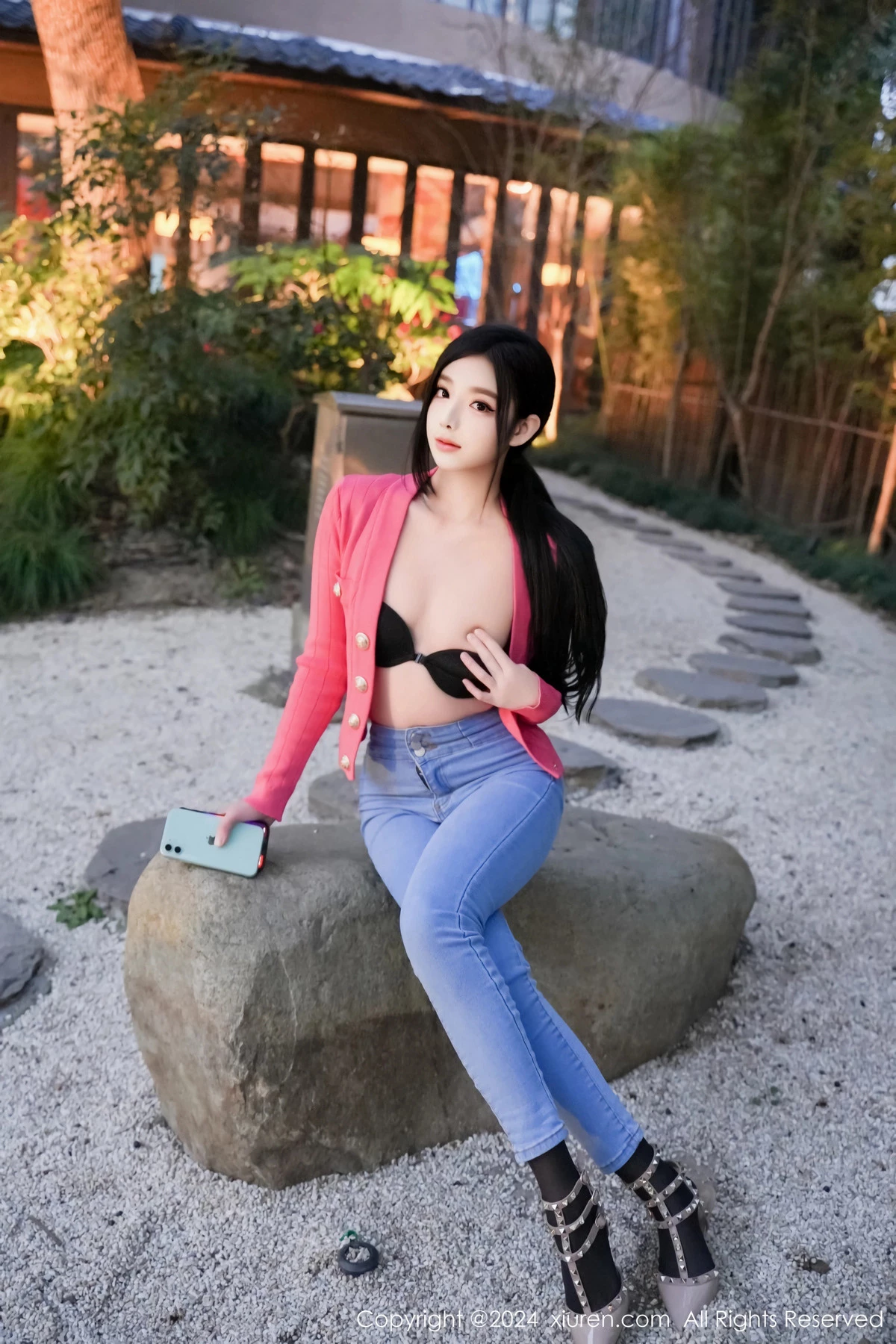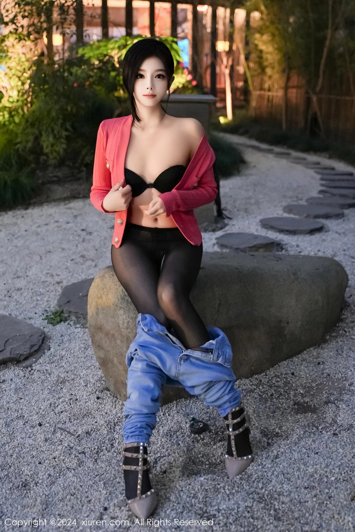 [XiuRen秀人网]No.8091 新人模特龙雪儿脱牛仔裤露性感黑色内衣配开档黑丝极致魅惑写真69P