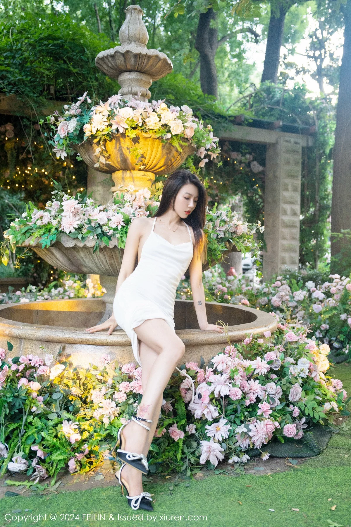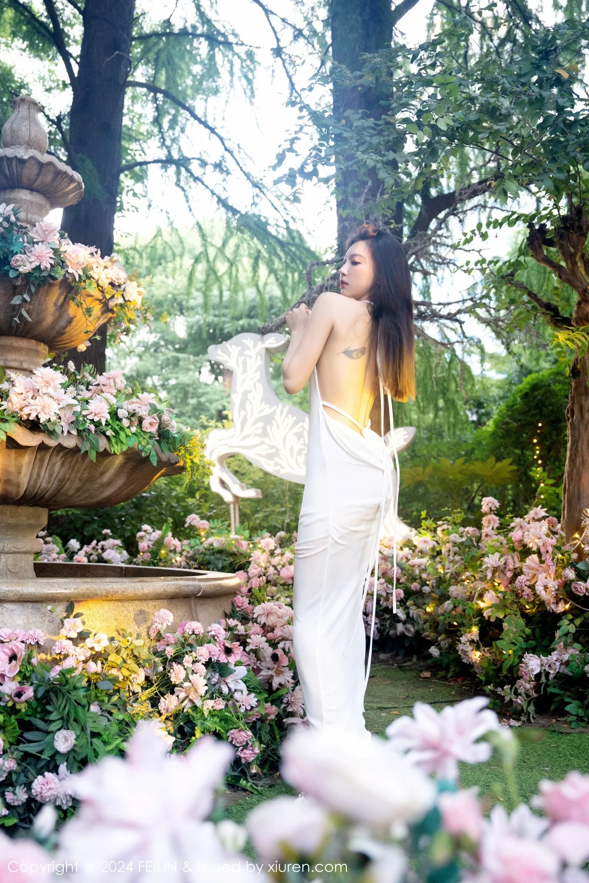 [FeiLin嗲囡囡]VOL.472 女神冯木木LRIS白色连衣长裙+性感灰色内衣秀曼妙身姿迷人写真70P
