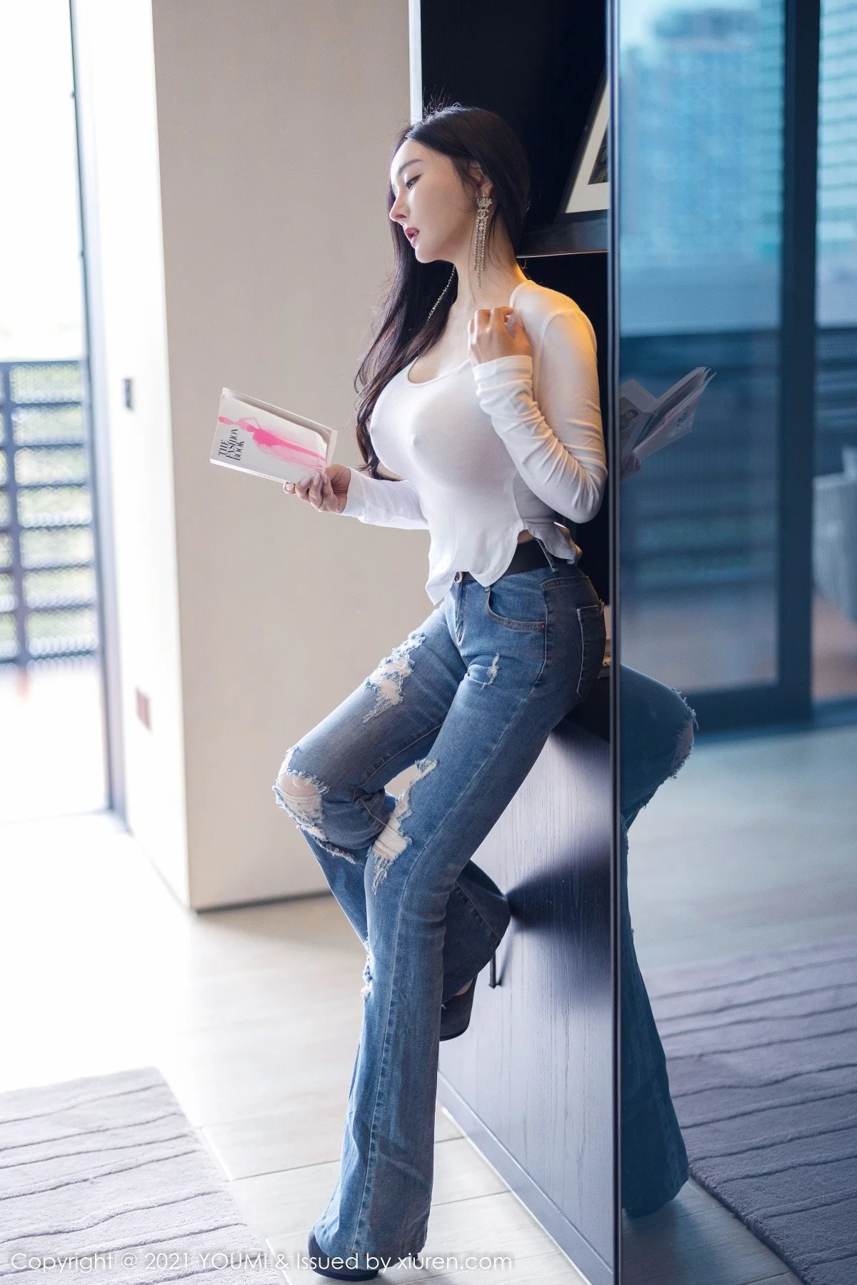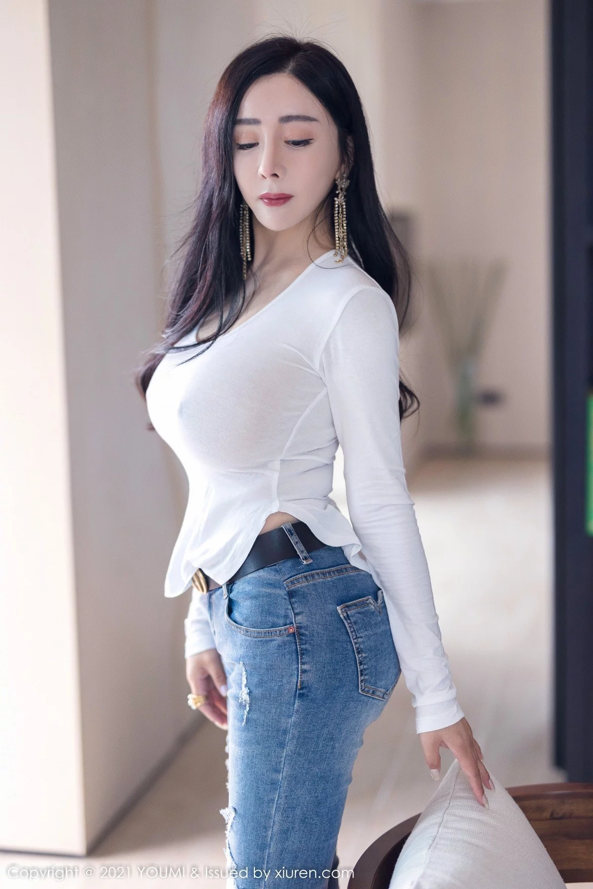 [YouMi尤蜜荟]Vol.726 模特允爾私房白纱衣配牛仔裤半脱露豪乳真空激凸惹火诱惑写真68P