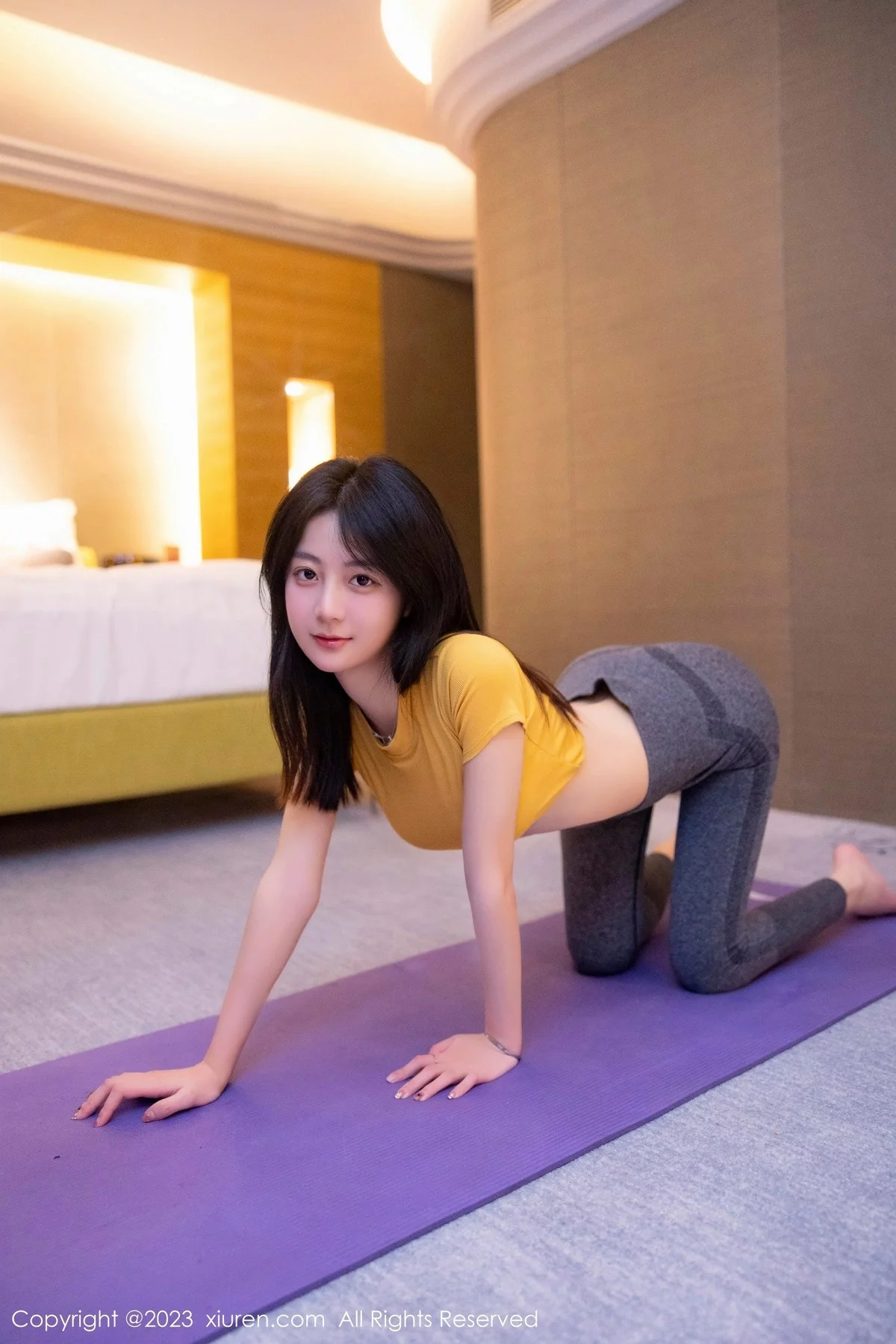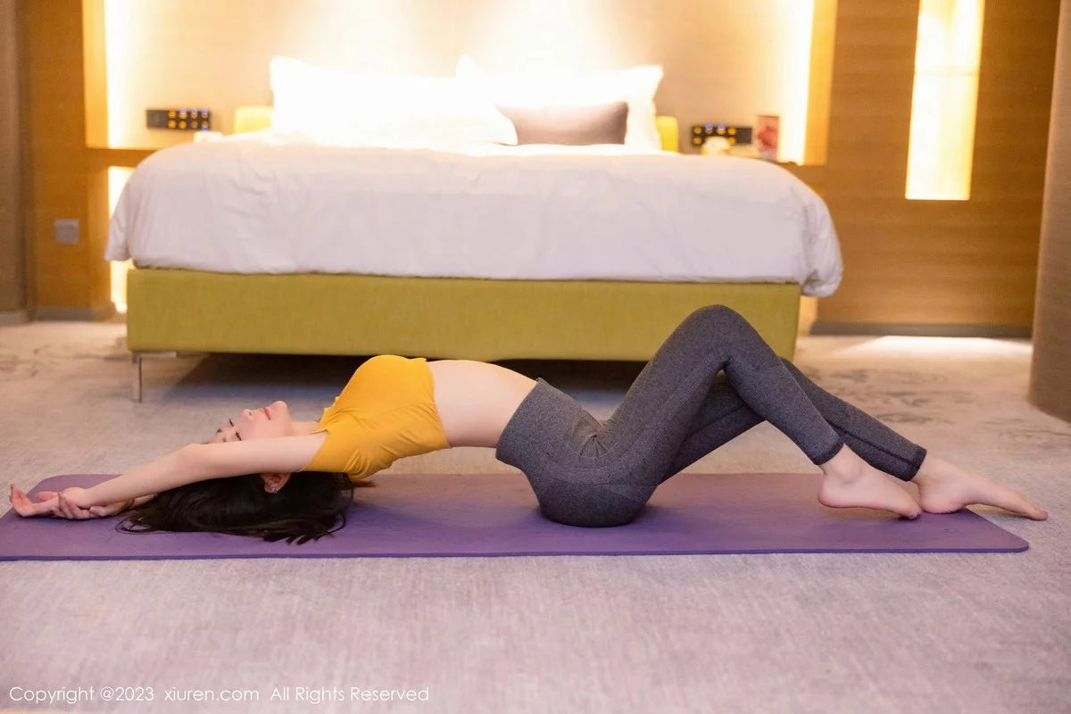 [XiuRen秀人网]No.6488 模特谢小蒽瑜伽运动主题黄色上衣配深灰紧身长裤撩人诱惑写真86P