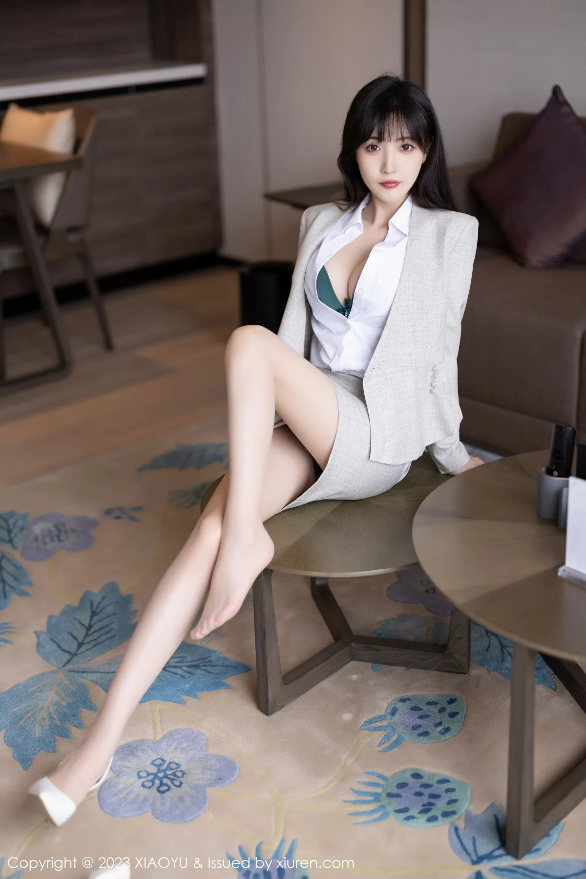 [XiaoYu画语界]Vol.1034 模特林星阑半脱Ol职业装露性感墨绿色内衣配原色丝袜诱惑写真87P