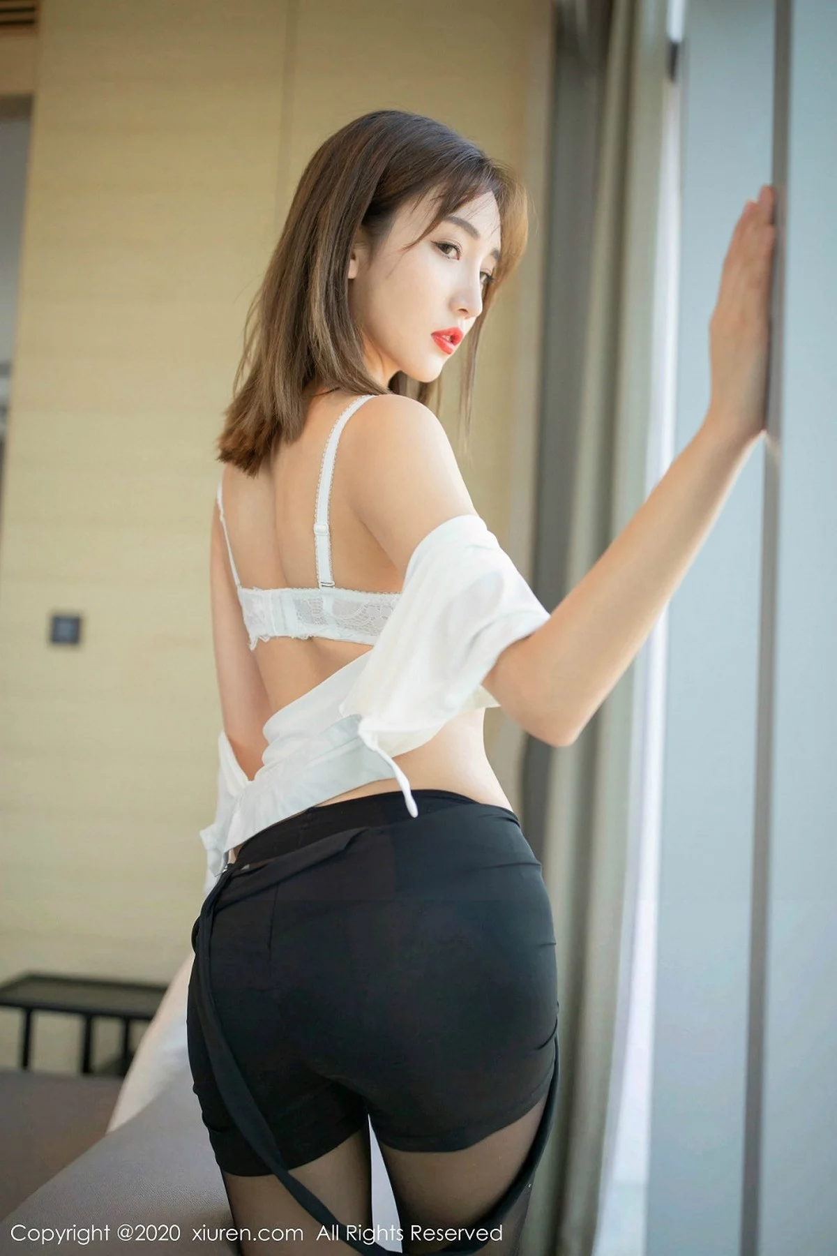 [XiuRen秀人网]No.1905 嫩模陆萱萱私房半截白衬衫配黑短裙半脱秀火辣身材诱惑写真70P