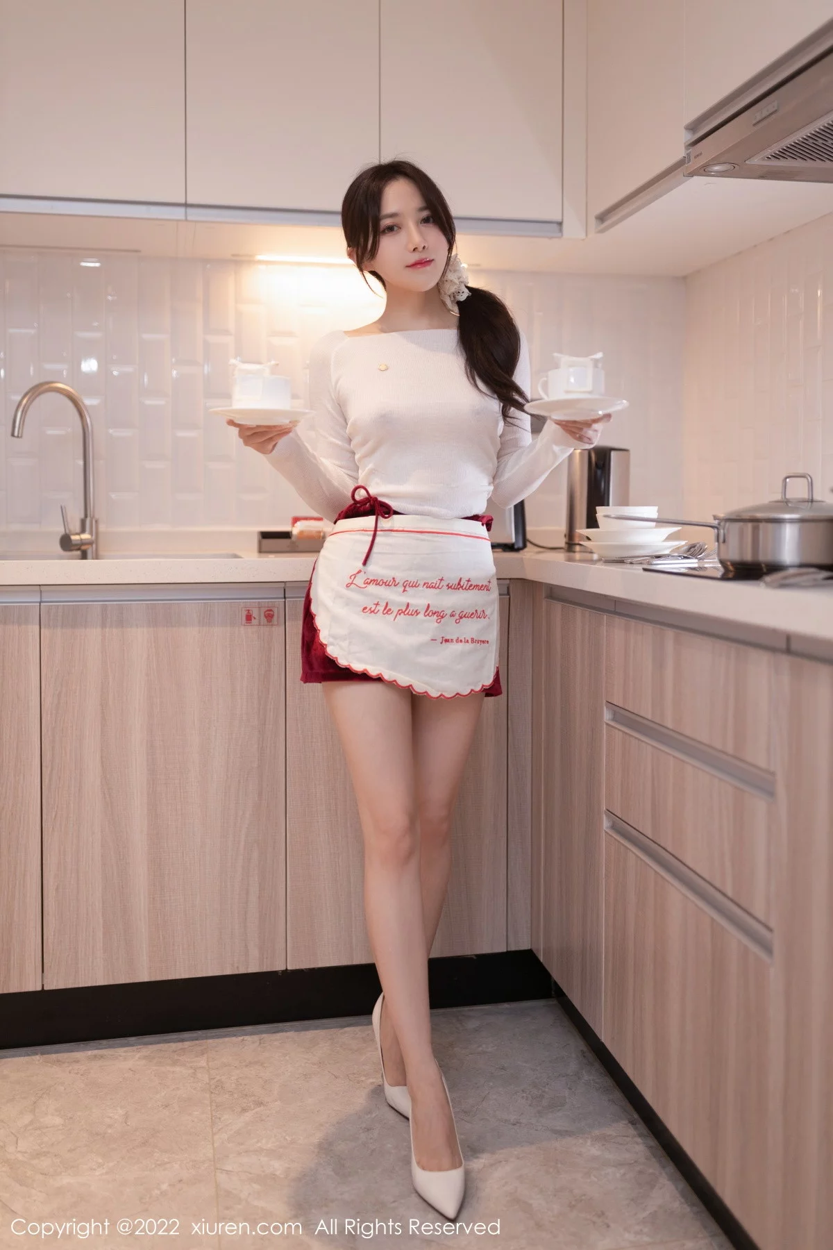 [XiuRen秀人网]No.5913 模特鱼子酱Fish白色轻透上衣配性感红短裙露蕾丝内衣诱惑写真80P