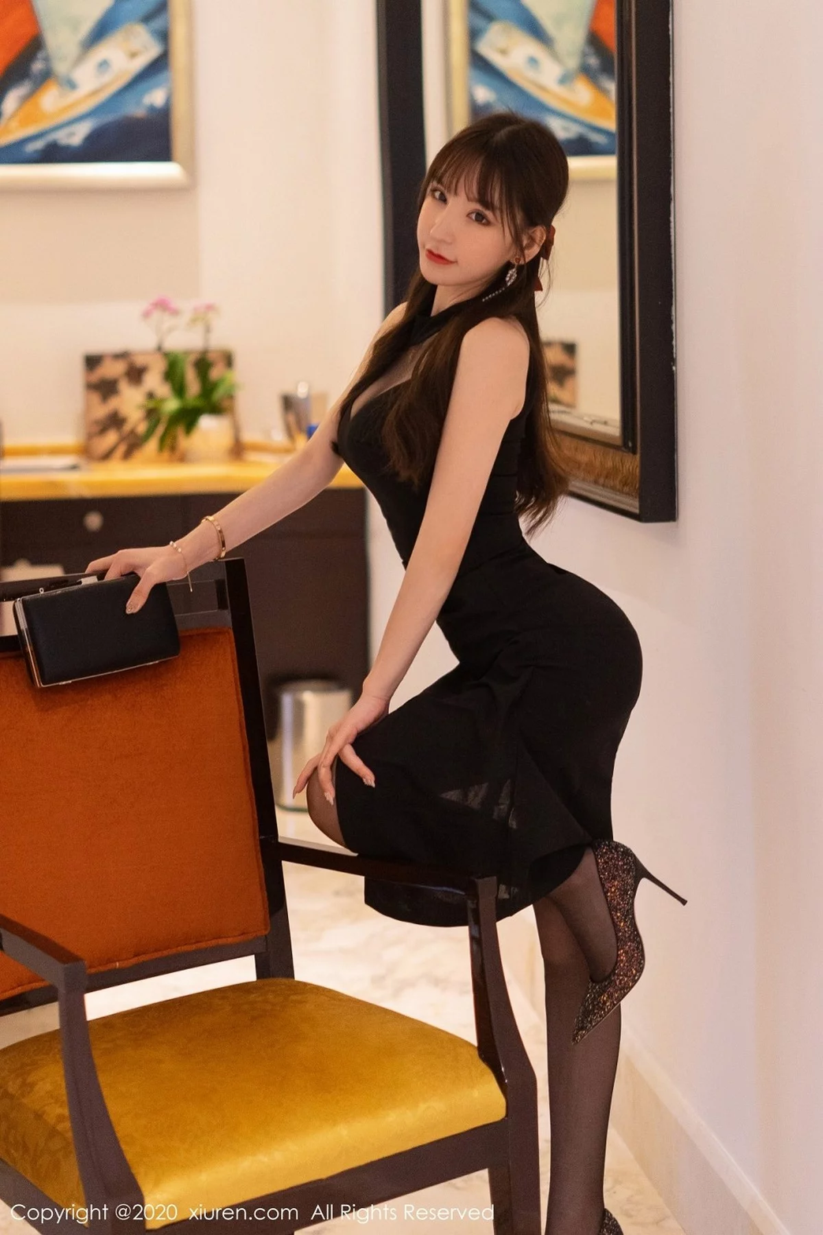[XiuRen秀人网]No.2418 女神周于希Sandy三亚旅拍脱典雅礼裙红色内衣配黑丝袜诱惑写真66P