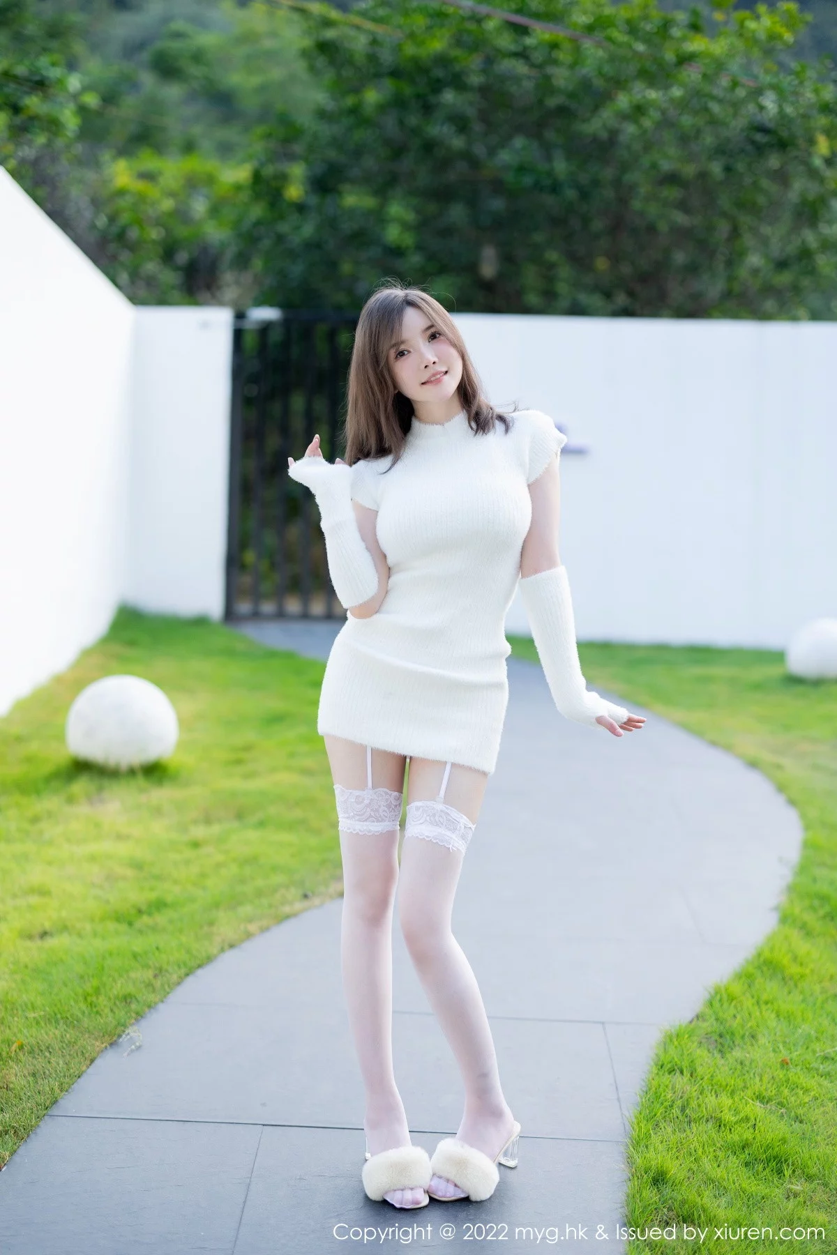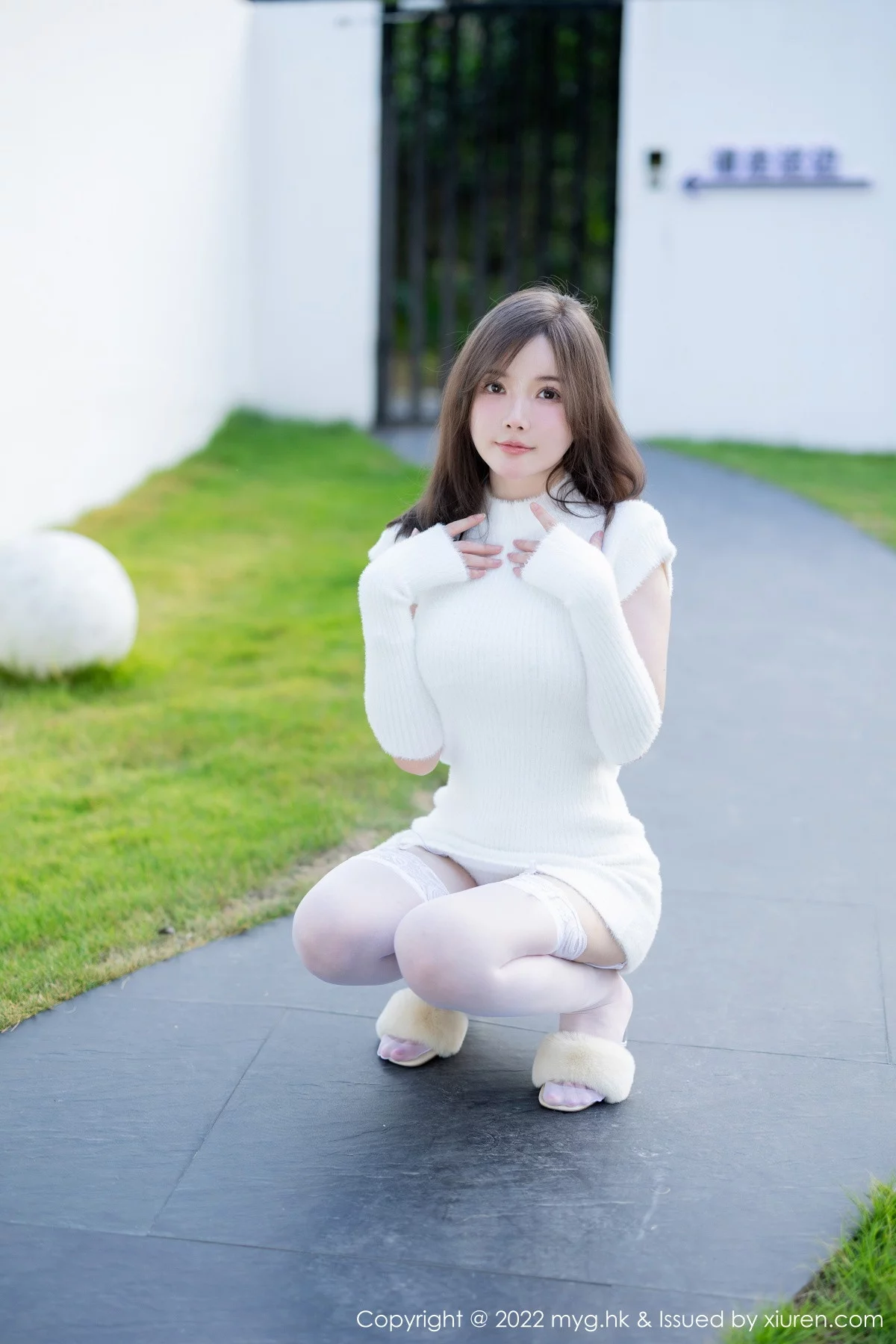 [MyGirl美媛馆]Vol.644 模特糯美子脱性感白色连衣短裙露蕾丝内衣配白丝吊袜诱惑写真65P