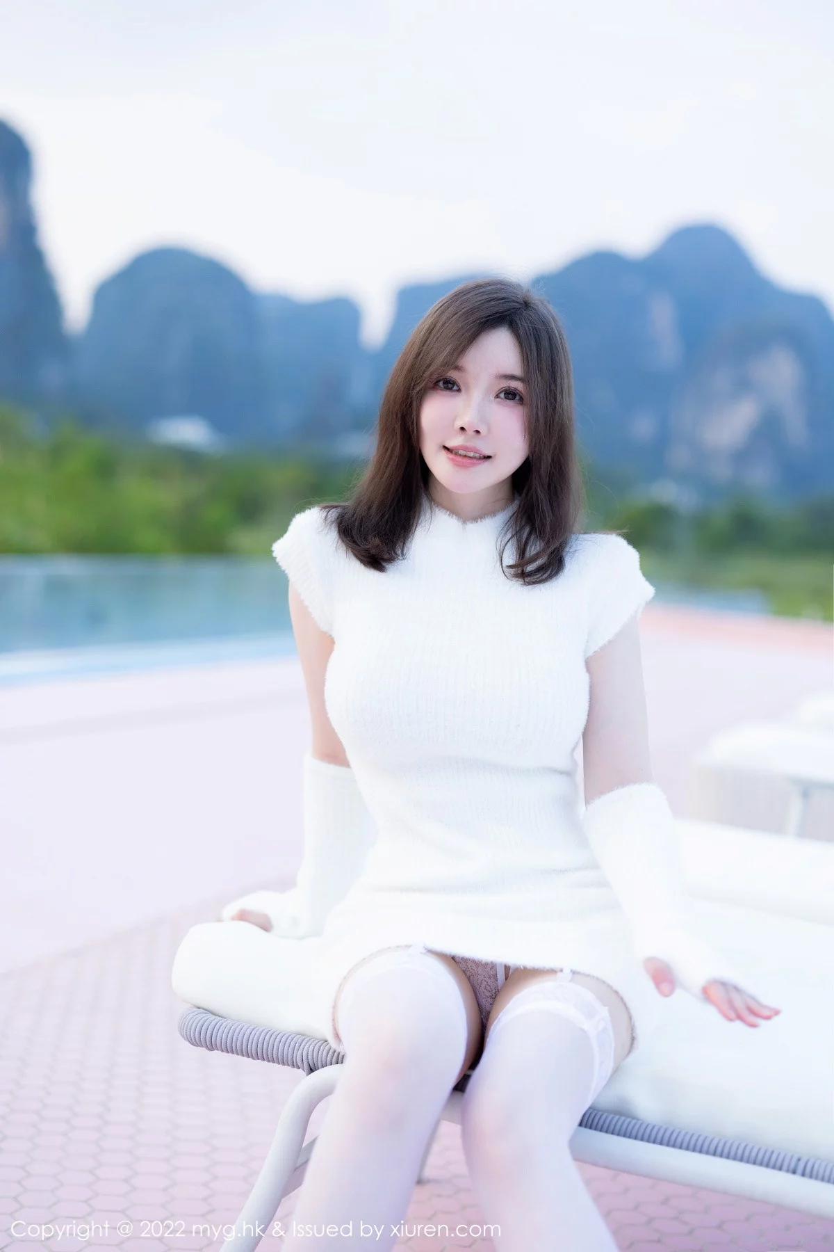 [MyGirl美媛馆]Vol.643 模特糯美子桂林心愿旅拍性感白T配黑短裙秀丰满身材诱惑写真63P