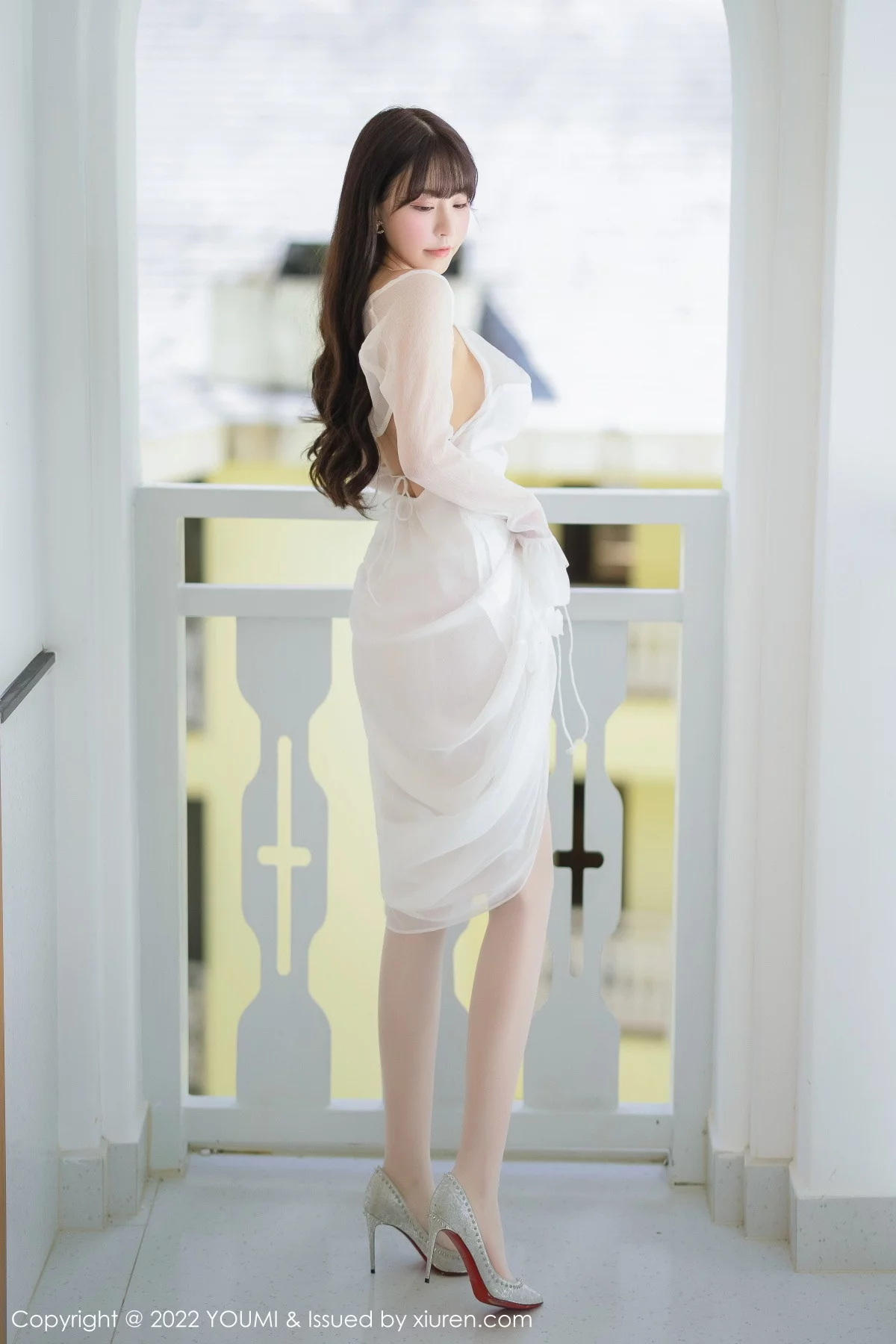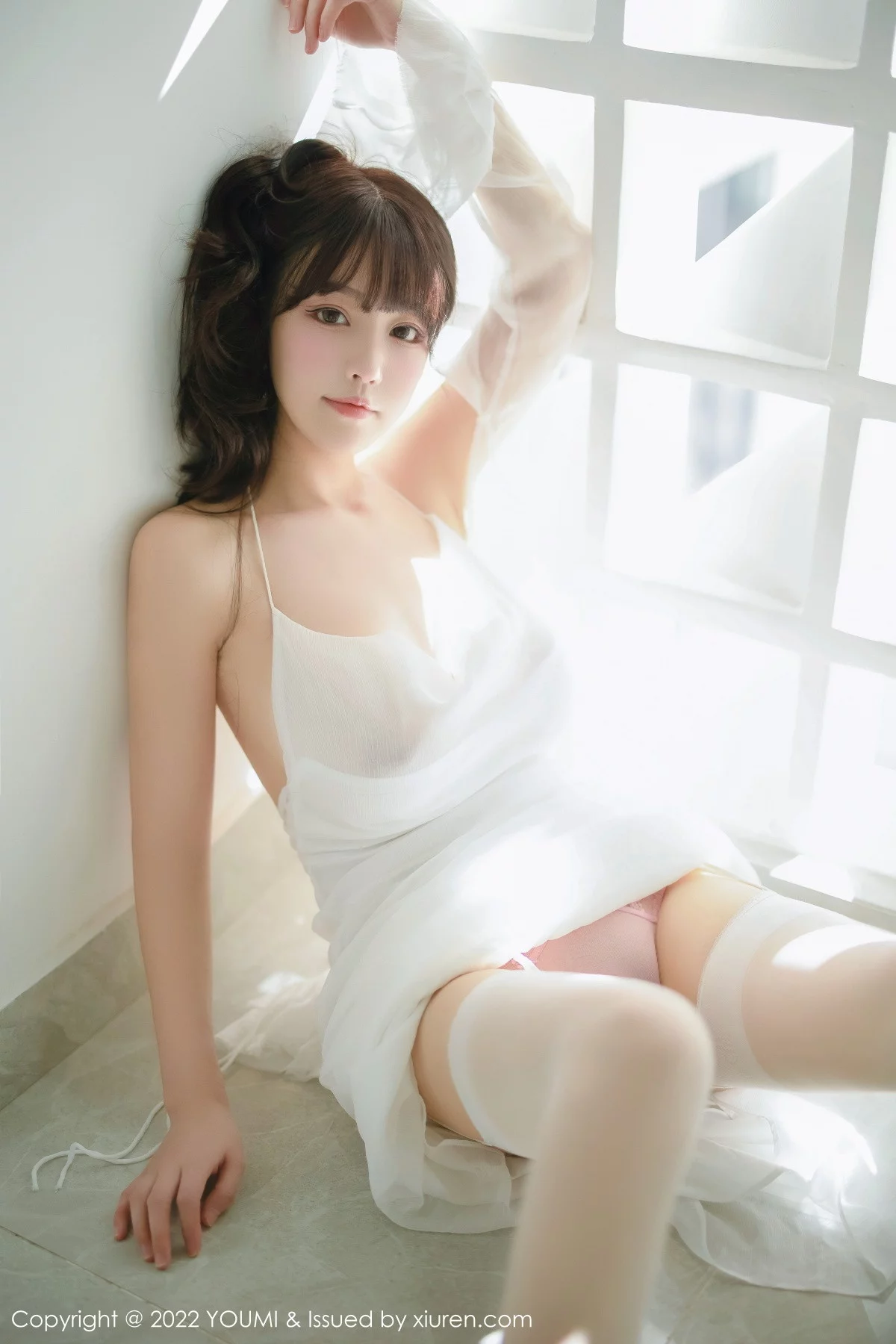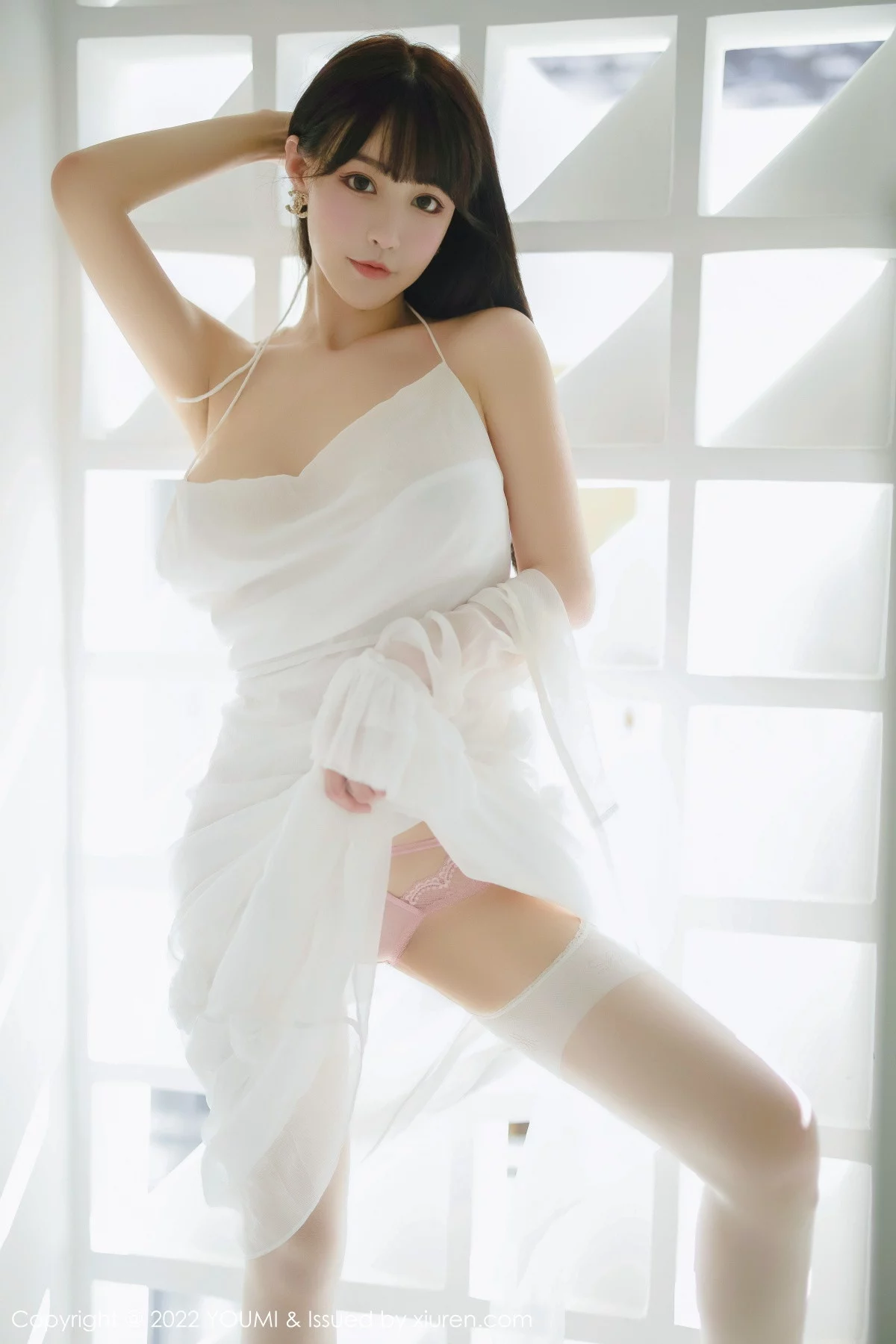[YouMi尤蜜荟]Vol.857 模特小海臀Rena珍珠色收身服饰配肉丝吊袜秀浑圆翘臀诱惑写真78P