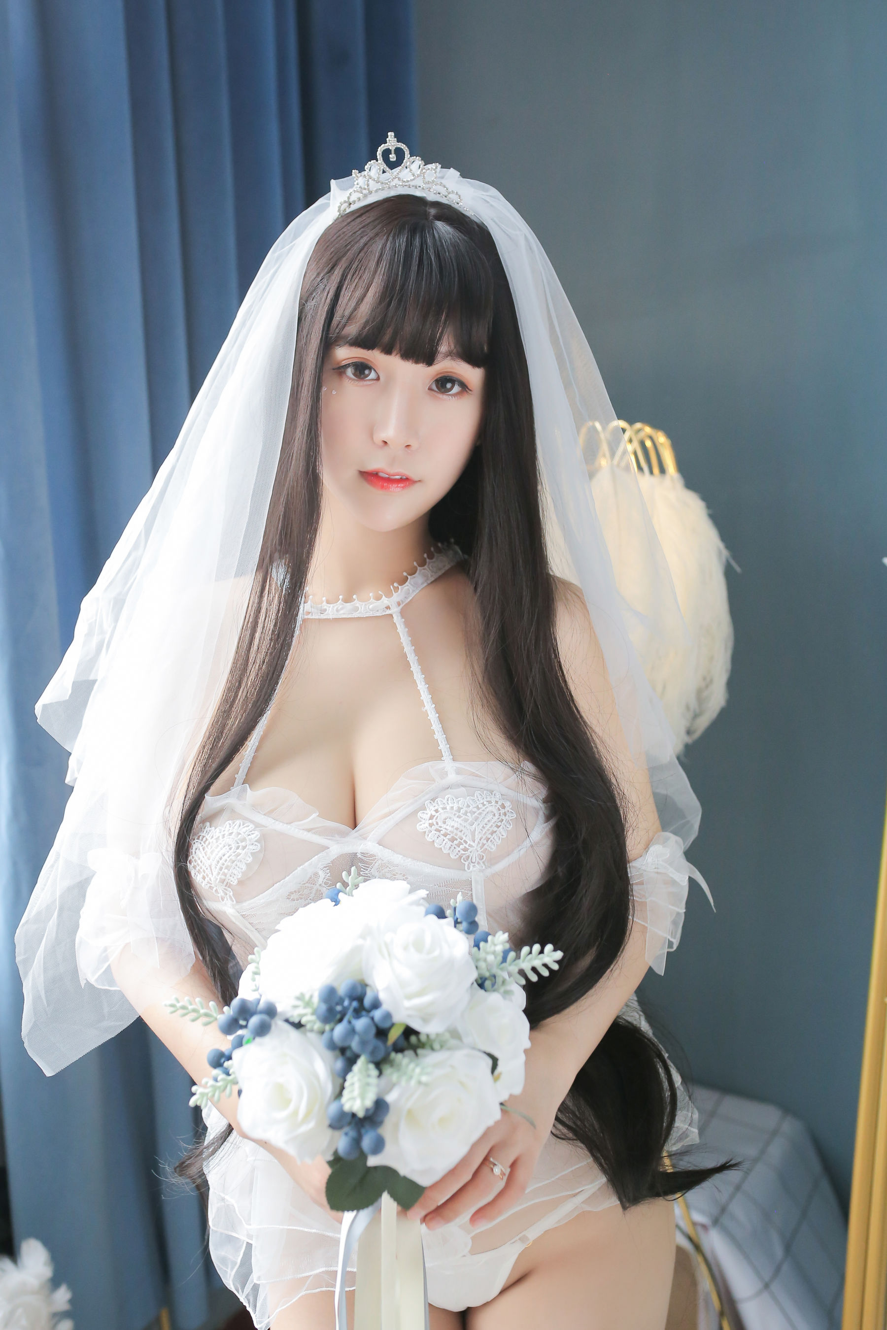 [COS福利] 巨乳猫九酱Sakura – 长发婚纱
