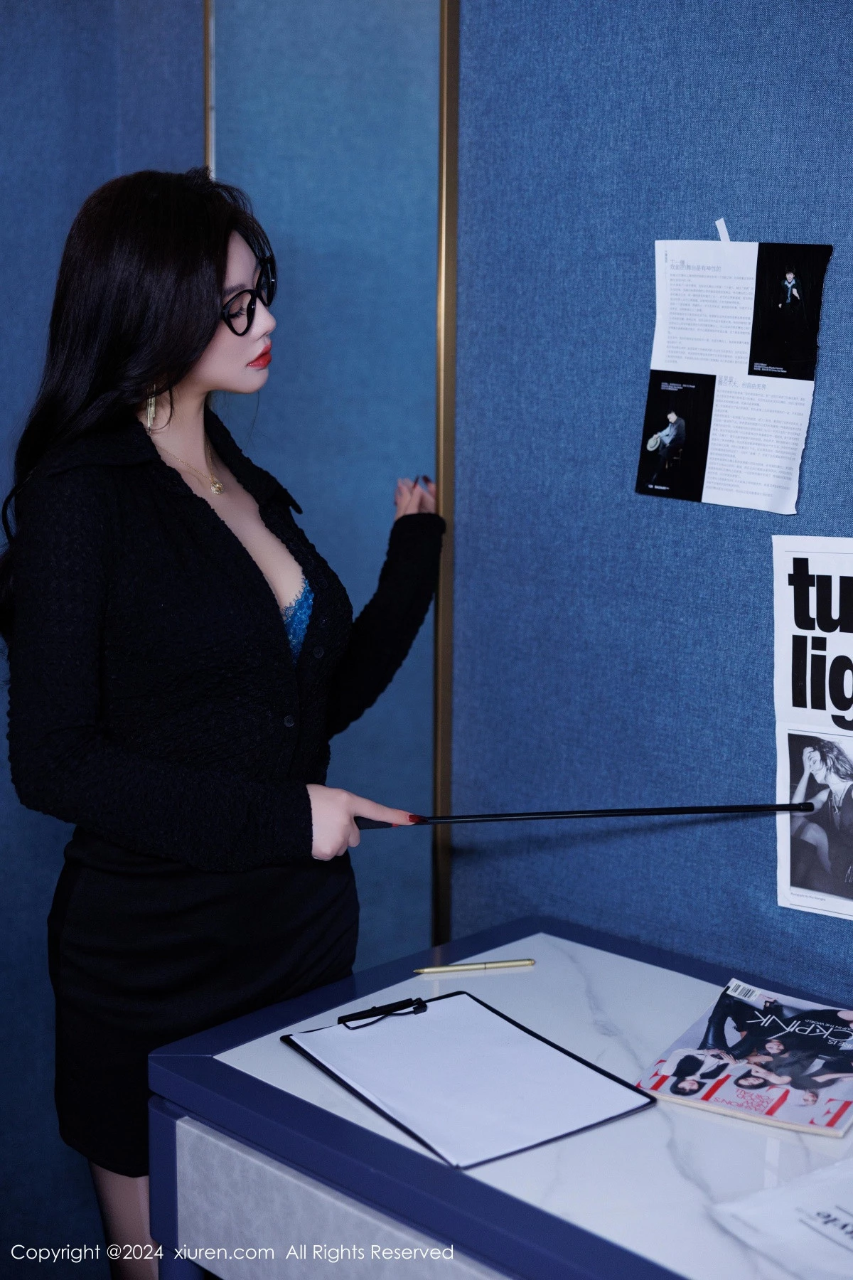 [XiuRen秀人网]No.9490 女神杨晨晨Yome黑色OL服饰露蓝色内衣配超薄黑丝秀翘臀诱惑写真85P