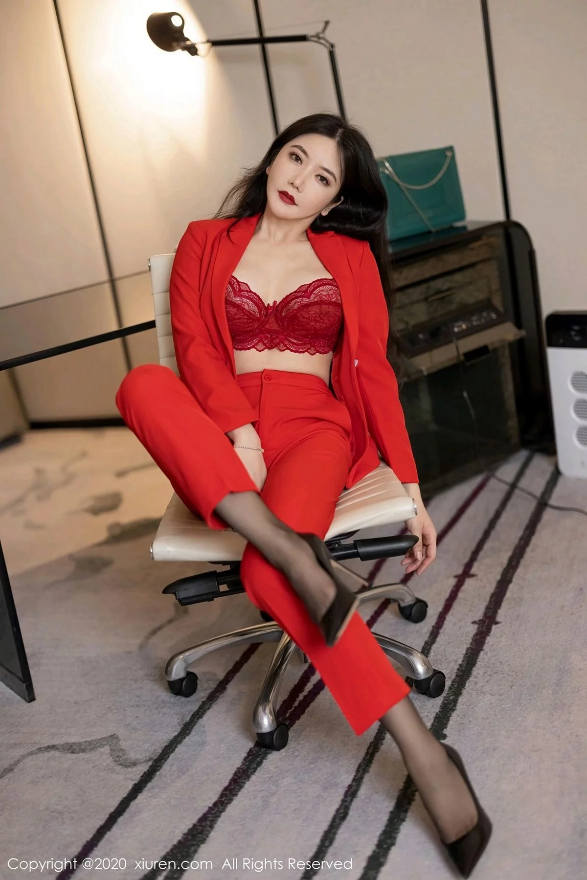 [XiuRen秀人网]No.2828 女神心妍小公主脱猩红飒爽西装露性感红色内衣秀丰满身材诱惑写真30P