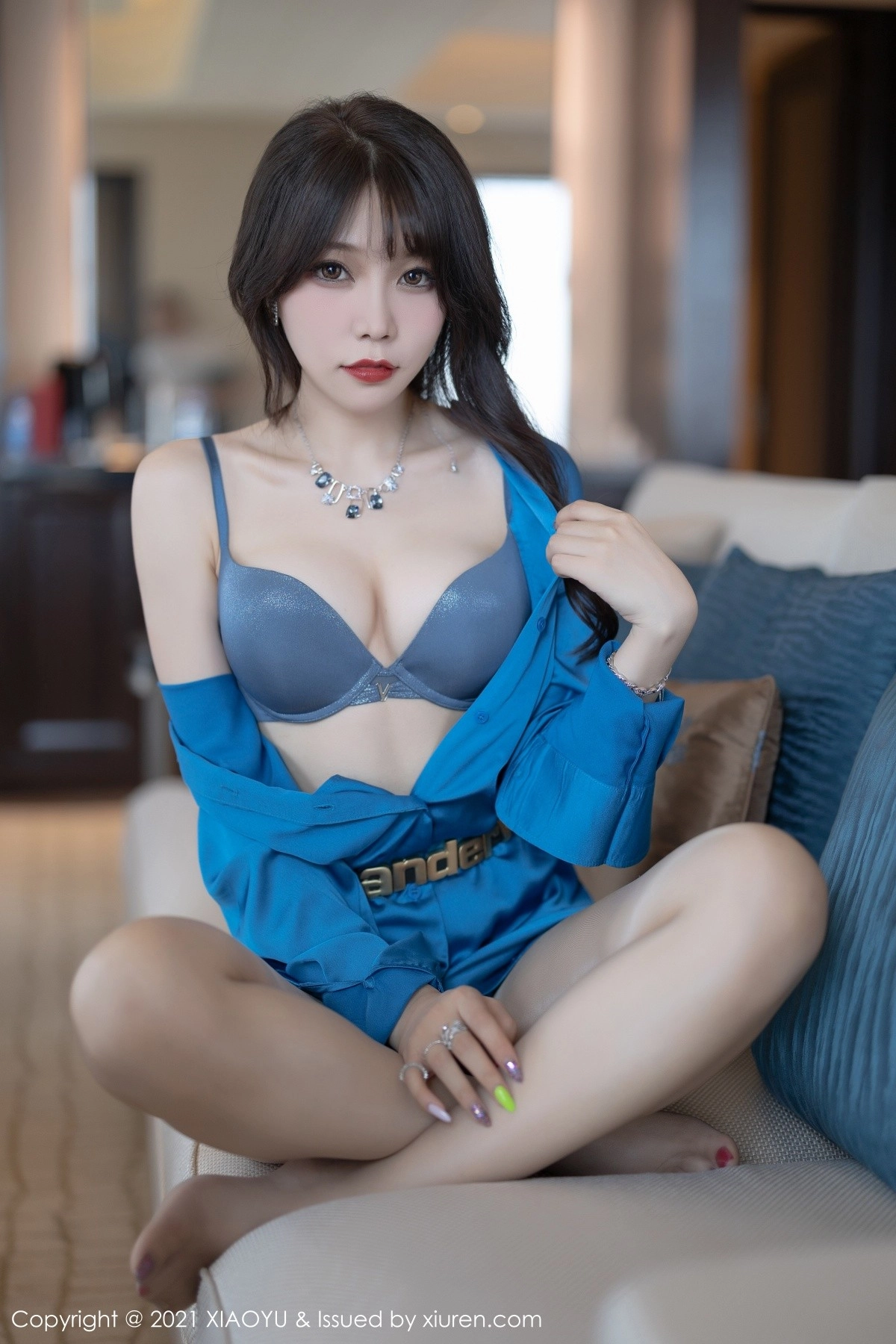 [XiaoYu画语界]Vol.569 模特月音瞳私房情趣轻透服饰配白色蕾丝袜秀惹火身材诱惑写真74P