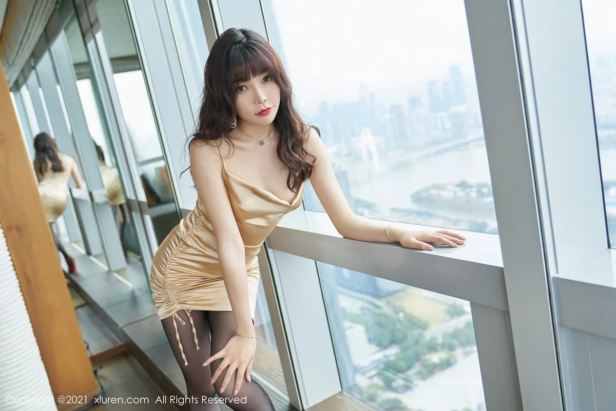 [XiuRen秀人网]No.3089 女神芝芝Booty私房浴室香槟色吊裙配无内黑丝裤袜秀翘臀诱惑写真83P