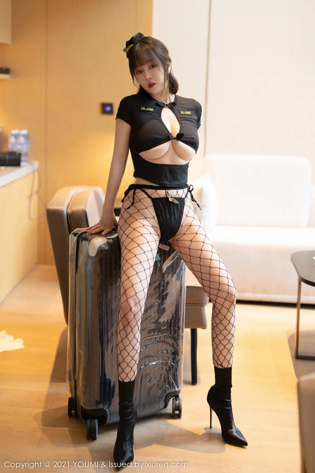 [YouMi尤蜜荟]Vol.731 女神王雨纯成都旅拍私房性感情趣女兵制服配网格丝袜诱惑写真51P