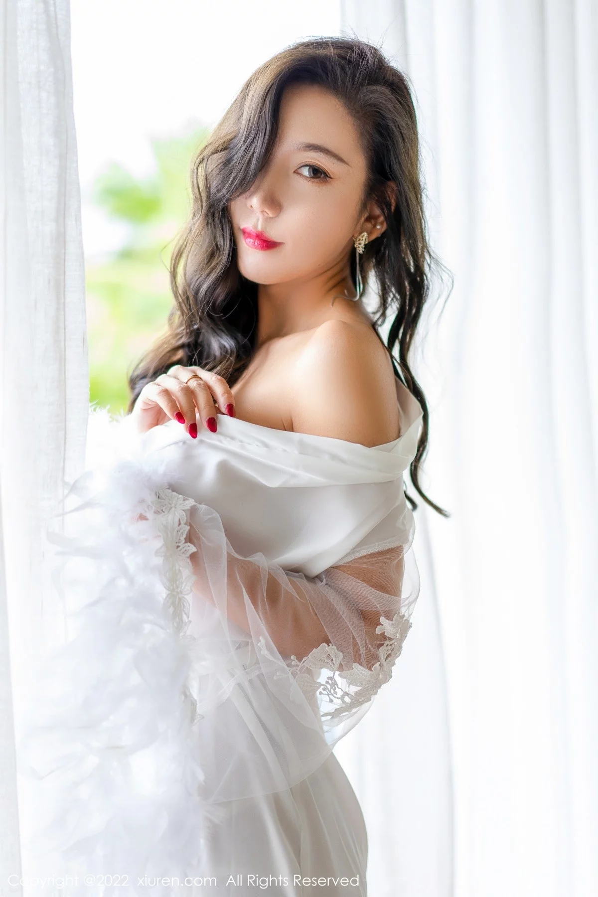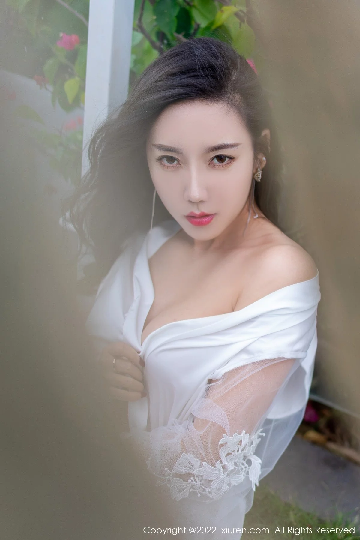 [XiuRen秀人网]No.4420 模特艾静香三亚旅拍户外性感白色礼服配开档肉丝撩人诱惑写真47P