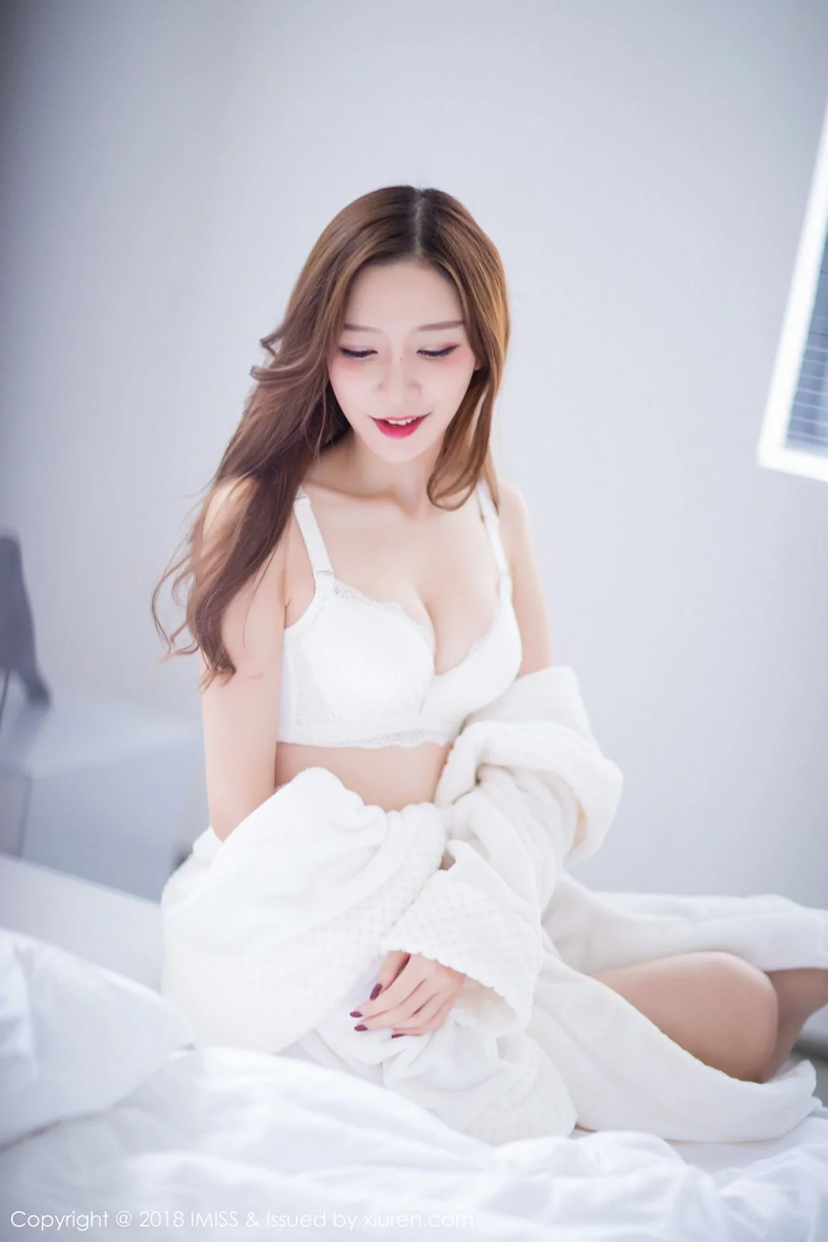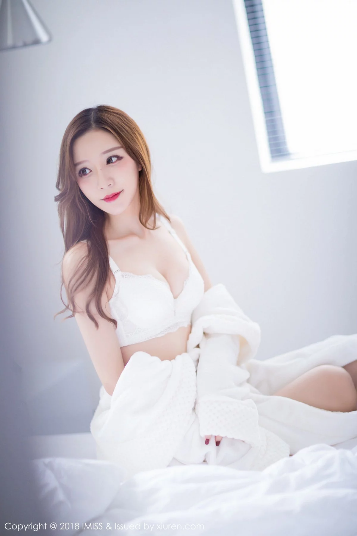 [IMISS爱蜜社]Vol.233 新人嫩模小琳白色蕾丝连身裙+私房浴袍秀豪乳诱惑写真44P