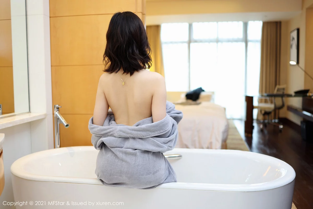 [MFStar模范学院]Vol.478 嫩模人间荒糖私房性感灰色睡袍半脱真空露白嫩娇躯诱惑写真48P