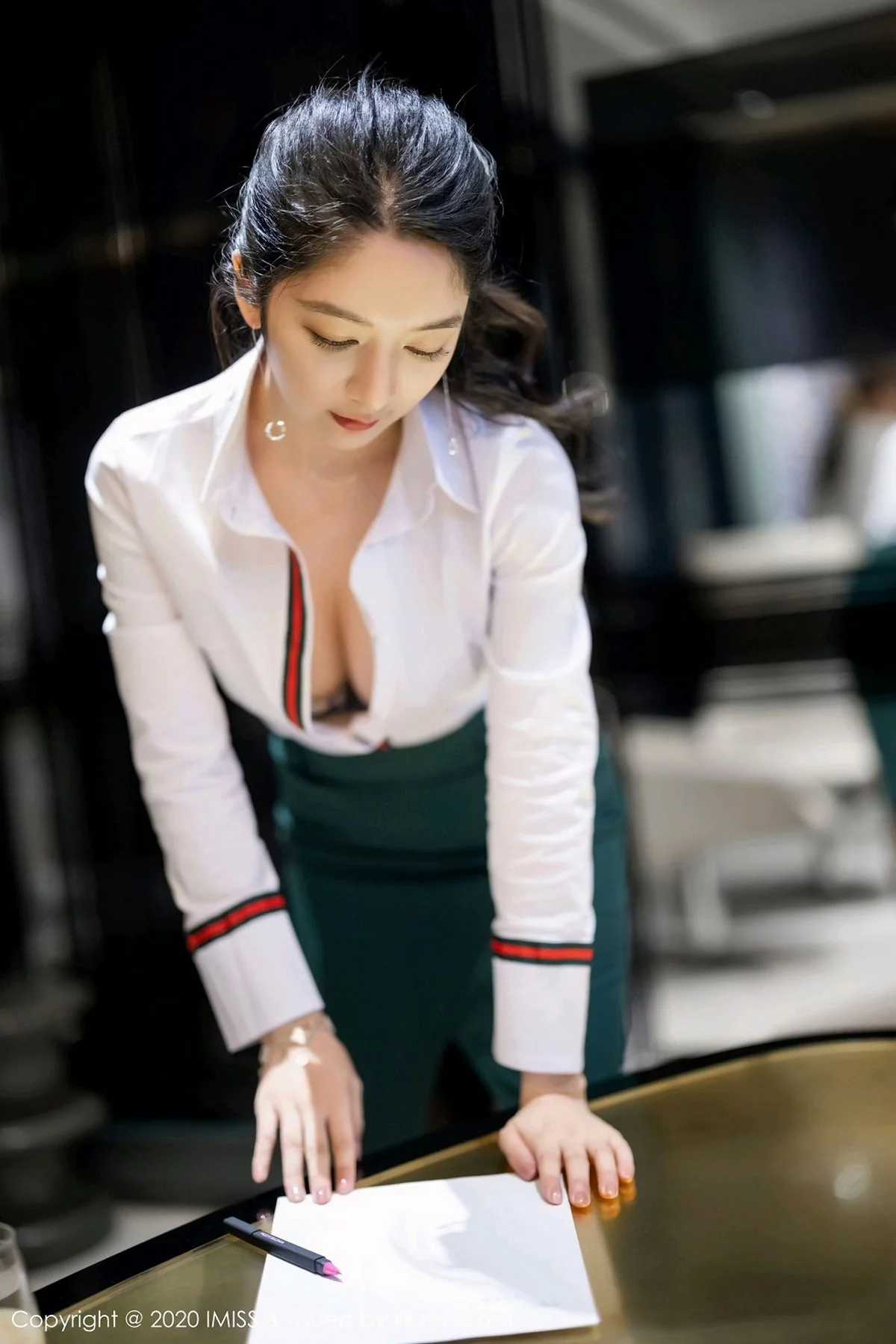 [IMISS爱蜜社]Vol.521 女神Angela小热巴都市风格职业OL主题半脱内衣露豪乳诱惑写真54P