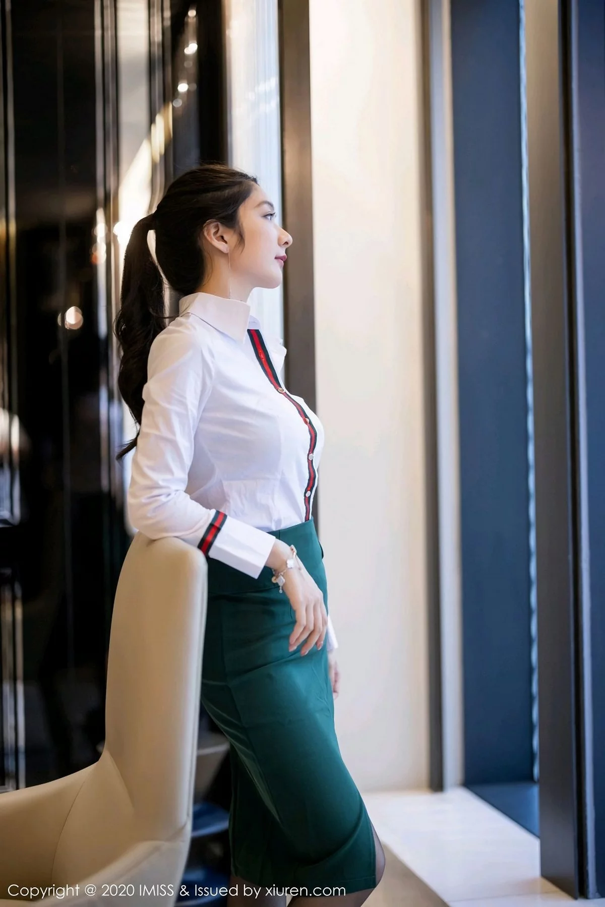 [IMISS爱蜜社]Vol.519 丽质模特Lavinia肉肉&Jermy典雅OL短裙配黑丝裤袜诱惑写真55P