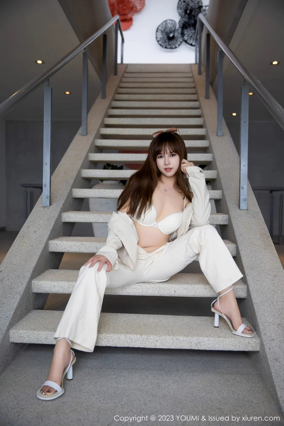 [YouMi尤蜜荟]Vol.921 模特icy猪脱简约浅色服露白色蕾丝内衣秀凹凸身材撩人诱惑写真65P