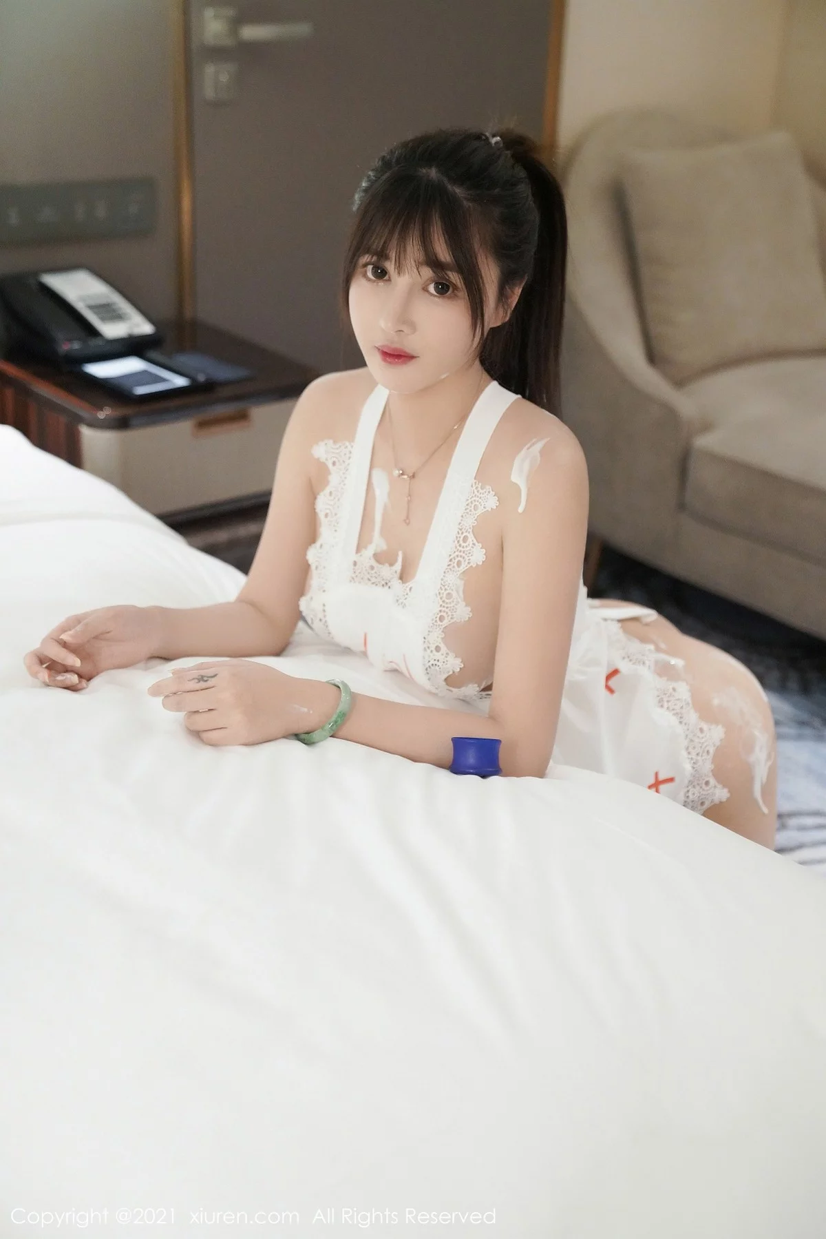 [XiuRen秀人网]No.3302 嫩模萌奈子白色情趣内衣主题私房真空露火辣身材极致诱惑写真40P