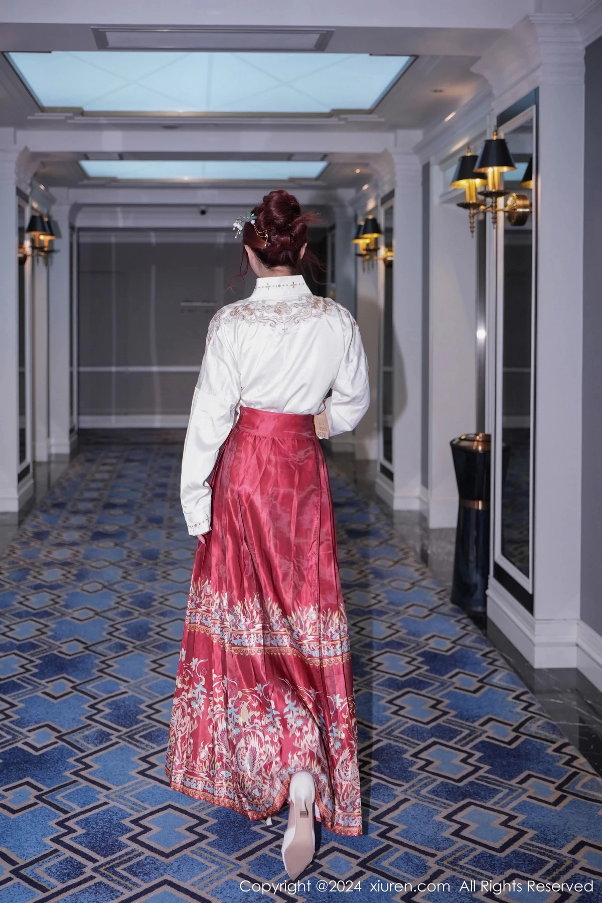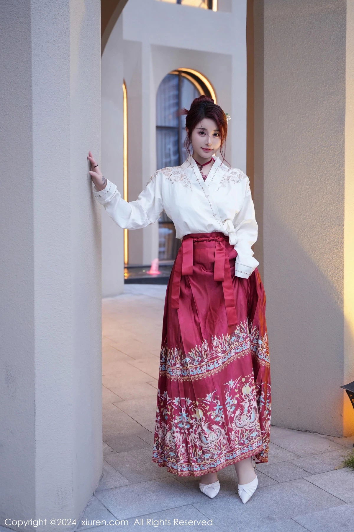 [XiuRen秀人网]No.7985 模特美七Mia性感红色轻透古装服配黑丝吊袜秀惹火身材诱惑写真70P