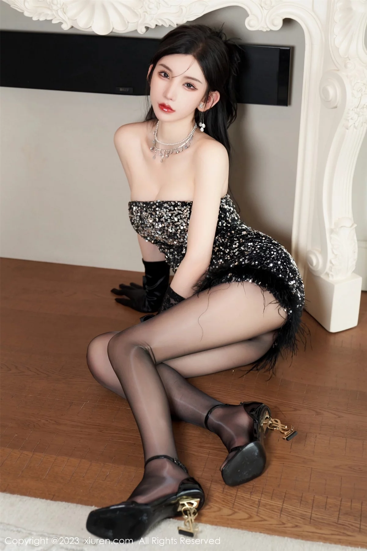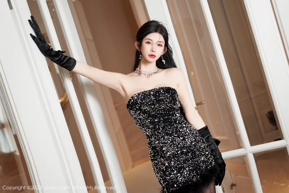 [XiuRen秀人网]No.6771 女神周于希Sally性感黑色低胸短裙配超薄油亮黑丝惹火诱惑写真87P