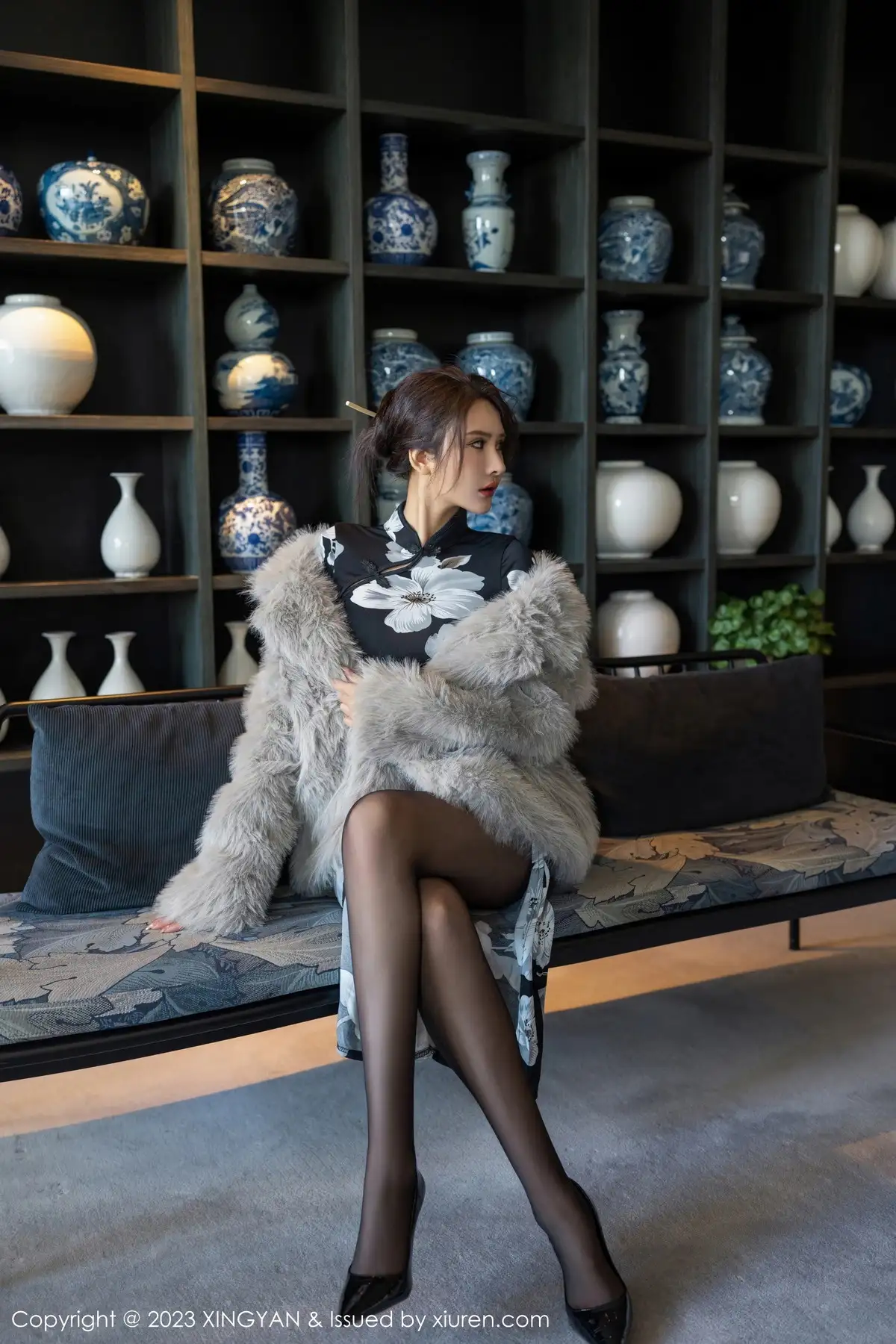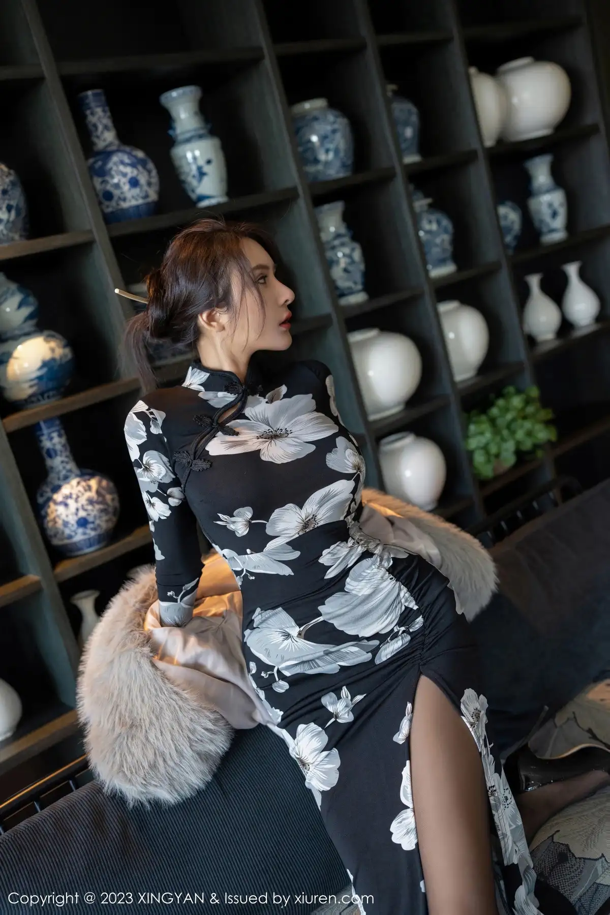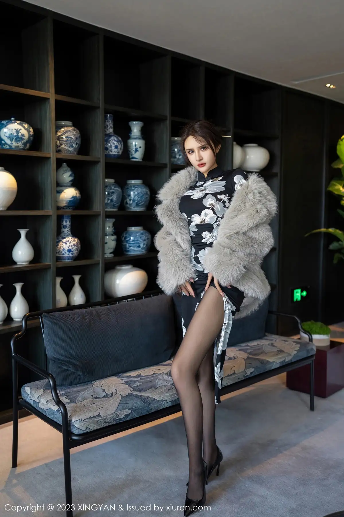 [XINGYAN星颜社]VOL.221 女神Emily尹菲性感深色旗袍配超薄黑丝秀完美身材迷人诱惑写真81P
